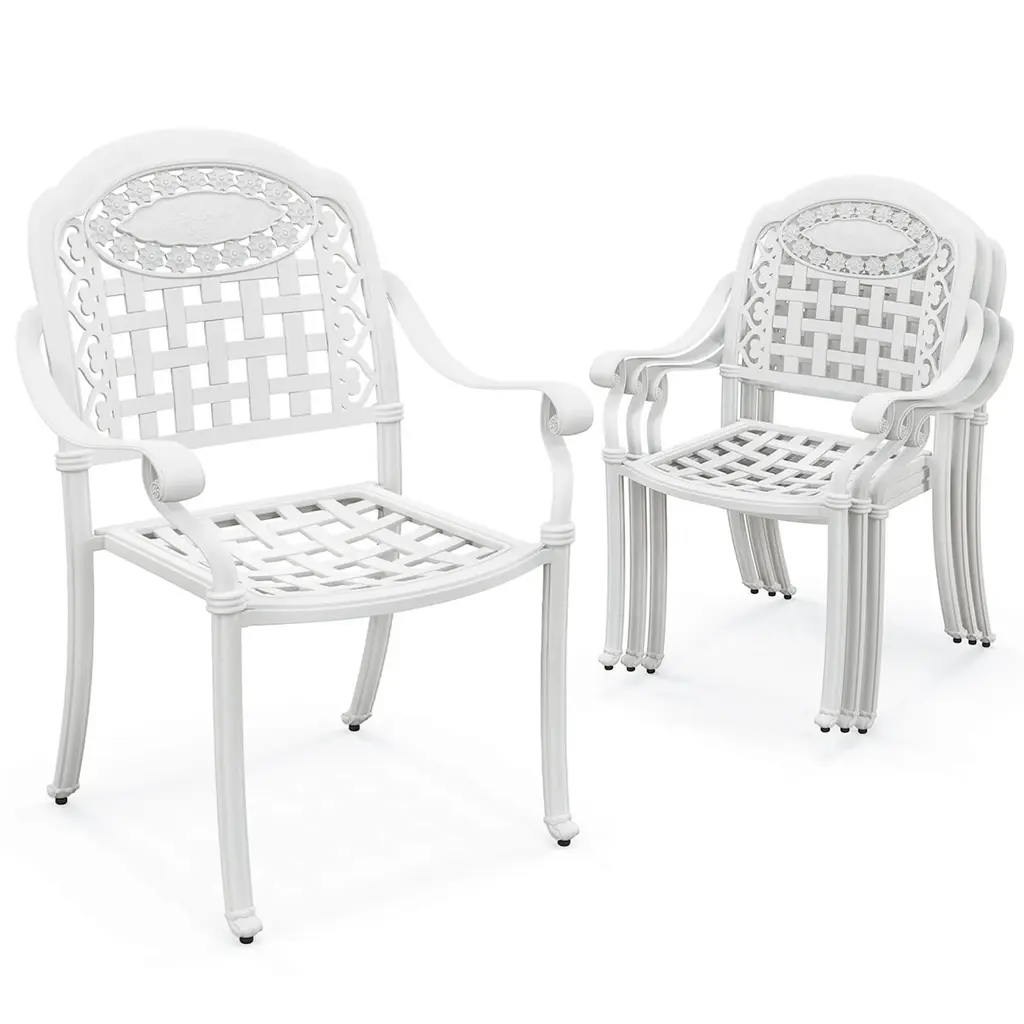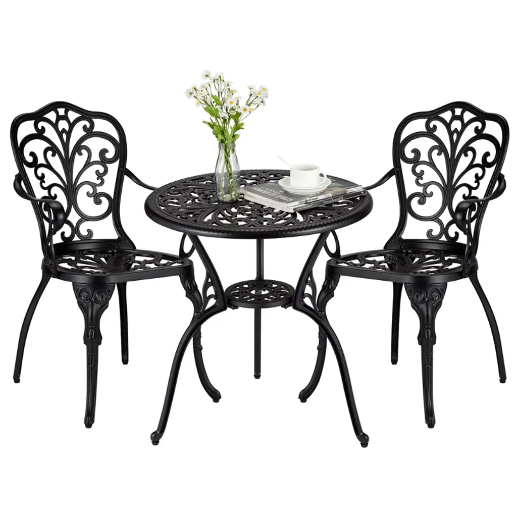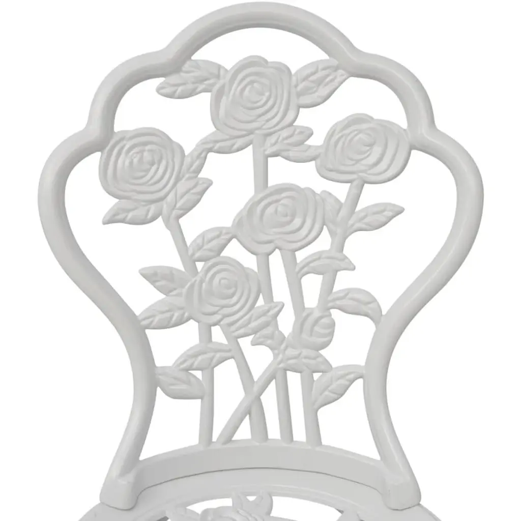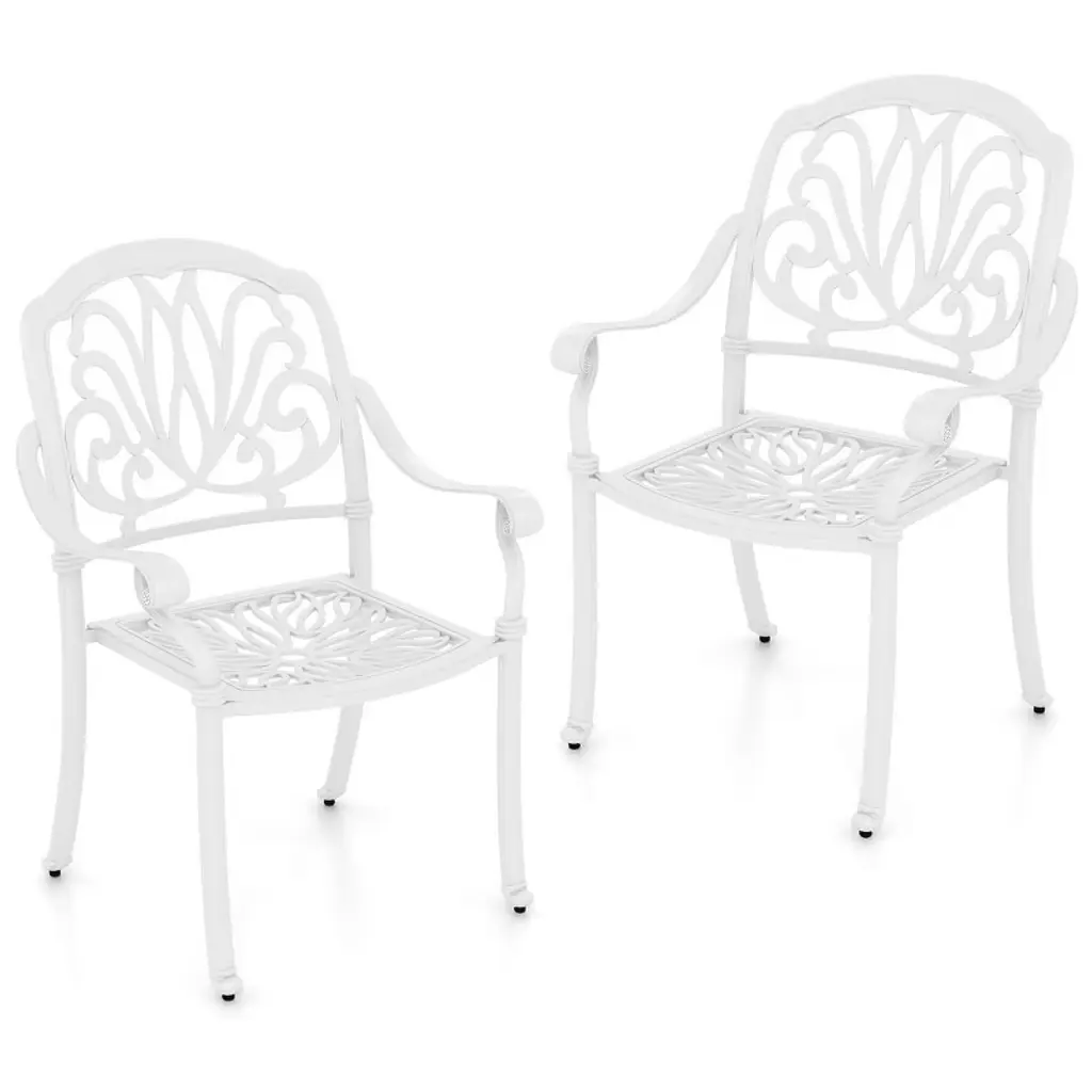 This Bistro Chair Set is all about style and practicality, making it perfect for boosting your outdoor dining vibe. With its smooth white look and gorgeous floral designs, these chairs add a touch of class to any garden or balcony, encouraging relaxation and enjoyment. Sturdy Construction: Each chair is made of premium cast aluminum, ensuring long-lasting durability and stability suitable for outdoor use.Alluring Aesthetics: The intricate floral inlays enhance the chairs’ visual appeal, making them a standout addition to your decor.Comfortable Seating: With a depth of 13.2 in and a width of 14.4 in, these chairs provide a comfy seating experience for everyone.Flexible Placement: Whether on the patio, balcony, or in the sunroom, these chairs fit beautifully in any setting.Compact Size: With dimensions of 19.3 in in length, 16.1 in in width, and a height of 32.1 in, they slot perfectly into tight spaces while remaining practical.