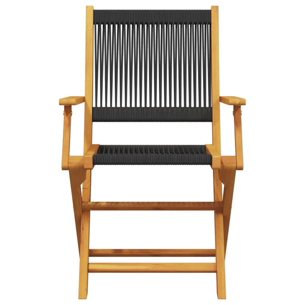 This compact round bistro set, made for two, enhances dining experiences whether you're inside or out. Its contemporary style, with the rich black finish of solid acacia wood and synthetic polypropylene, gives you a visually appealing and practical solution for your space. Space-Saving Design: The foldable design of this bistro set lets it collapse into a compact form, making it perfect for those with limited space, ideal for balconies and small gardens.Crafted for Comfort: Each chair has a generous seat width of 15.7 in and a depth of 14.9 in, ensuring enough space for comfy seating when dining with friends or family.Durability at Its Core: Made from solid acacia wood, known for its strength and weather resistance, this set is built to last, with an oiled finish that enhances its natural color while protecting it from damage.Modern Aesthetic: The sleek lines and rounded edges of the table and chairs give a trendy modern feel, making it a stylish addition to your garden, patio, or dining area.Perfect for Any Occasion: Whether you're enjoying a morning coffee or hosting a small dinner outside, this bistro set is versatile enough for all sorts of uses—from casual coffee serving to classy dining.