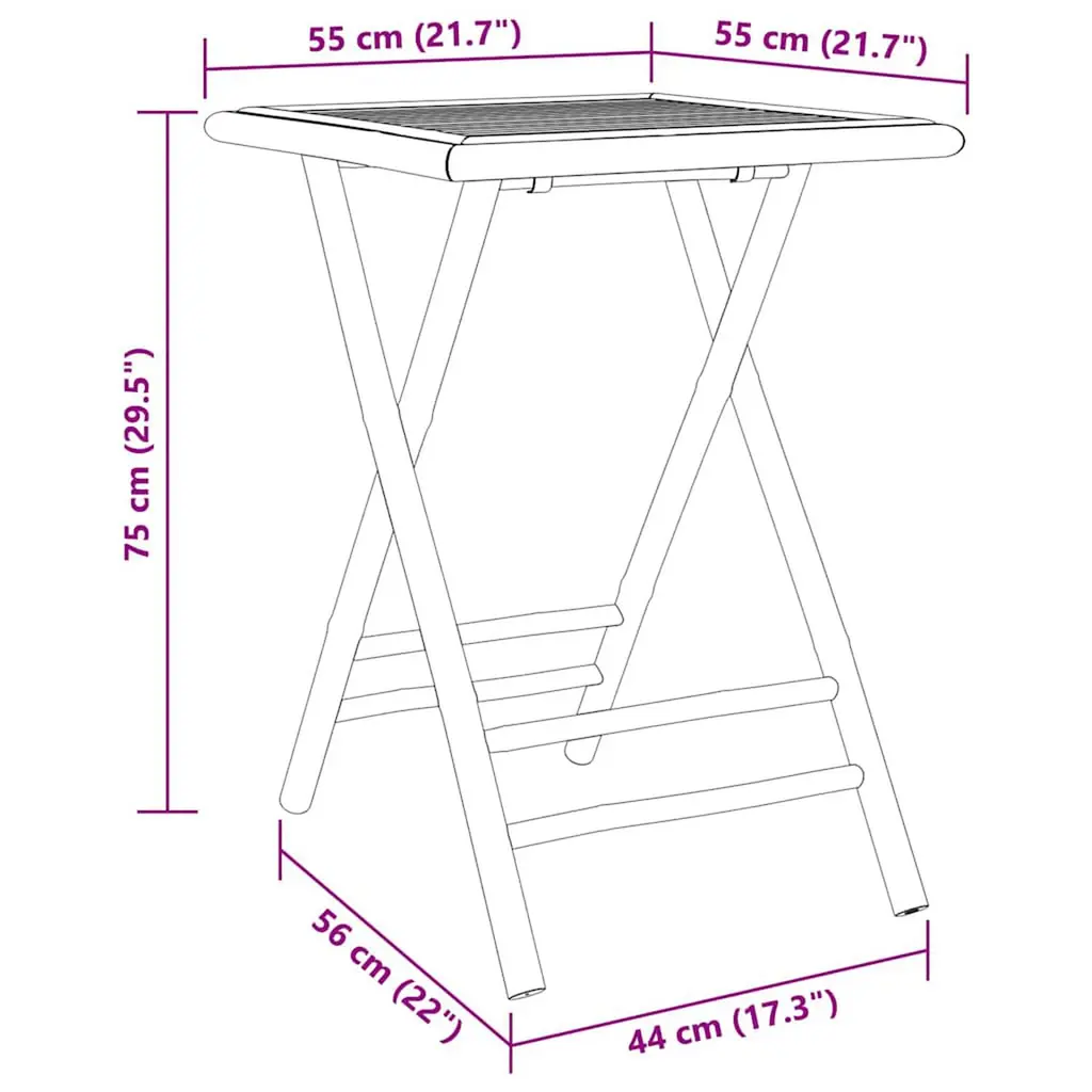 This 3-piece folding bistro set is perfect for outdoor dining. With a square table and two matching chairs that blend comfort and style, it has a modern dark grey and natural bamboo finish. It nicely enhances any garden, balcony, or patio, giving you a chic spot for relaxing or dining for two. This set includes 1 square table and 2 versatile chairs, perfect for close outdoor dining. Made with bamboo and polyester, the set withstands various weather conditions. Ergonomically designed chair backs give support, making long meals outdoors enjoyable. Folding design allows for effortless storage, making it a winner for smaller areas. Easy to clean with removable covers, keeping your outdoor decor looking fresh.