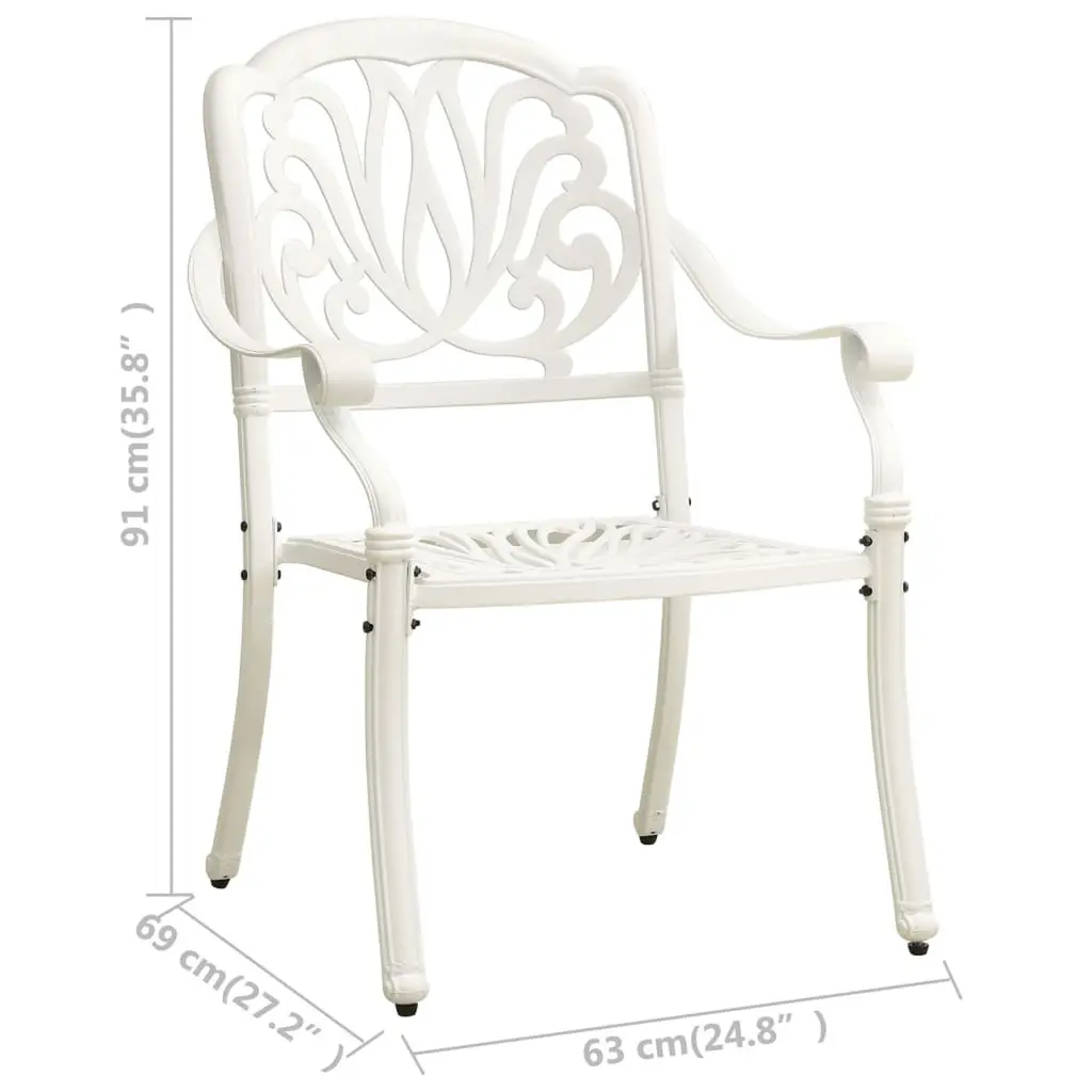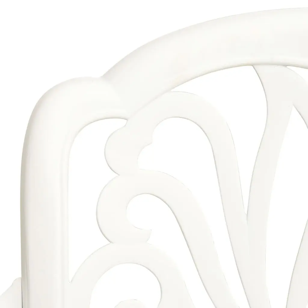 This 5-Piece Outdoor Bistro Set is a fab addition to any balcony or patio, designed to jazz up your outdoor space with its classy old-school style and smooth white finish. With a solid round table and comfy chairs, it’s perfect for having nice dinners or just kicking back with a book. The stunning traditional design includes a round table with a smooth, painted surface that fits various outdoor decor styles.The tough cast aluminum means it lasts, with UV resistance to protect against sun damage.The curved armrests on the chairs boost comfort, letting your guests relax while they eat or chat.This bistro set’s super versatile and perfect for dining, reading, or chill hangouts with friends and family.With a max capacity of 5, its dimensions make it plenty spacious for a little group to sit together comfortably, making it a great pick for any outdoor space.