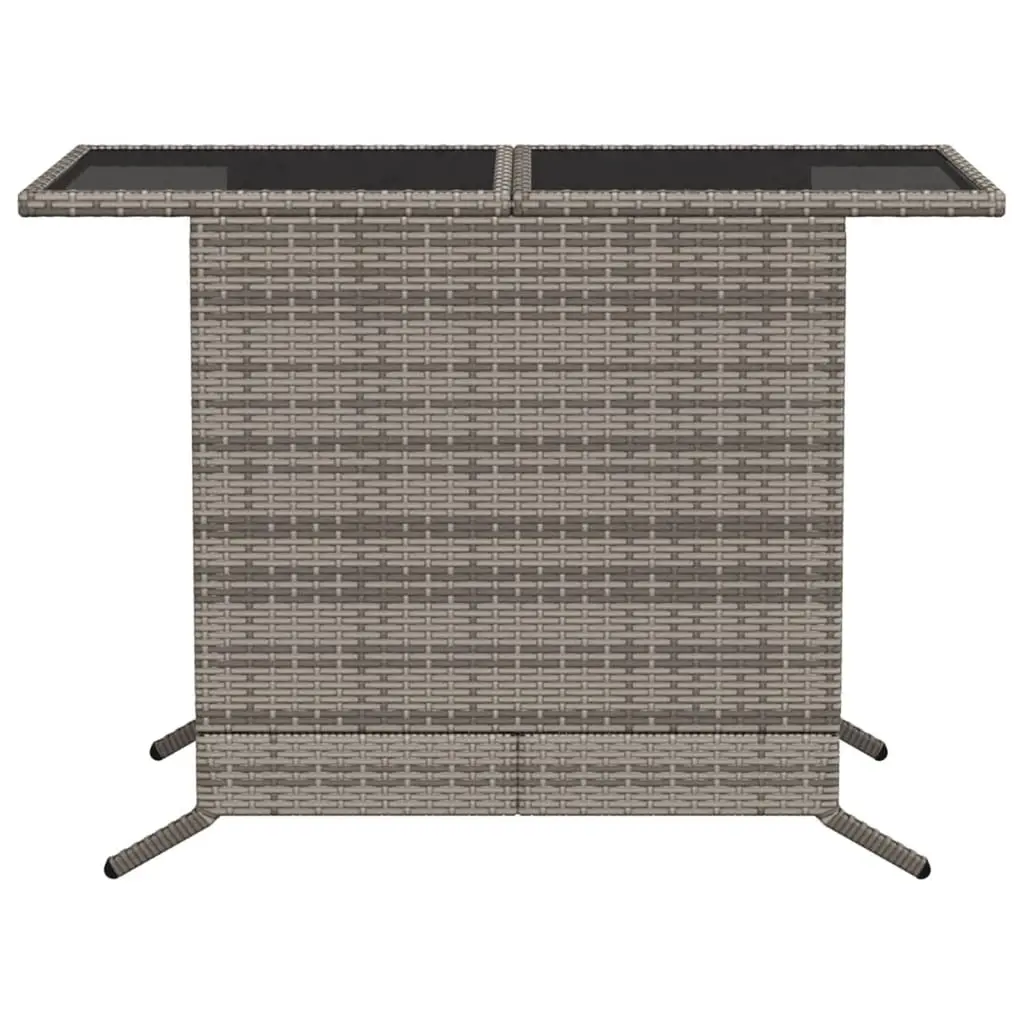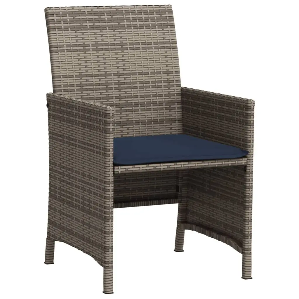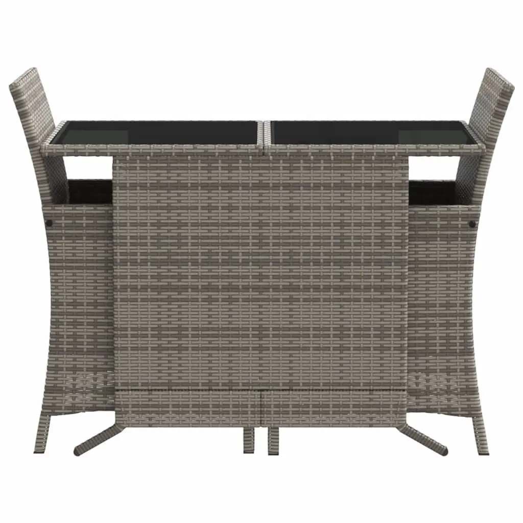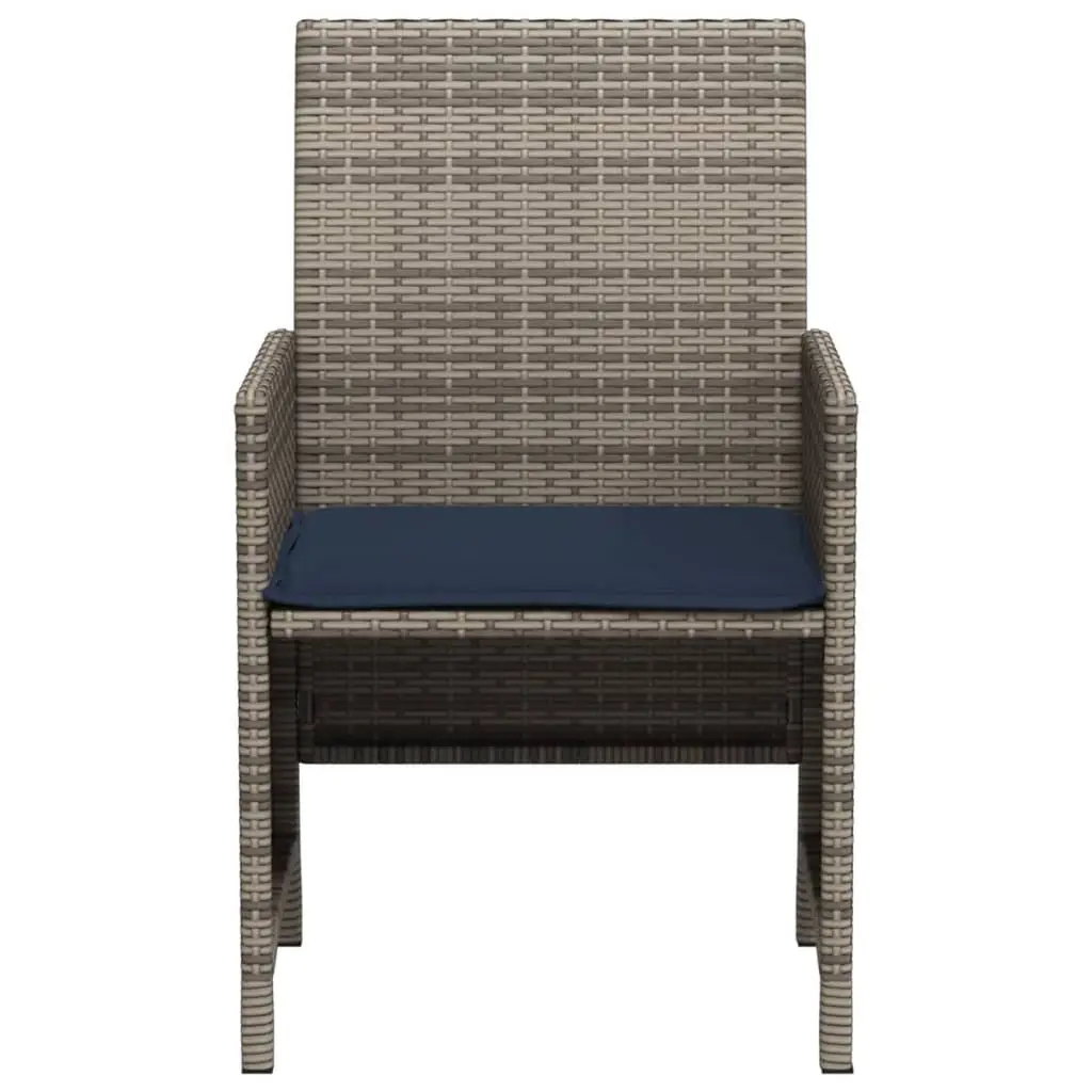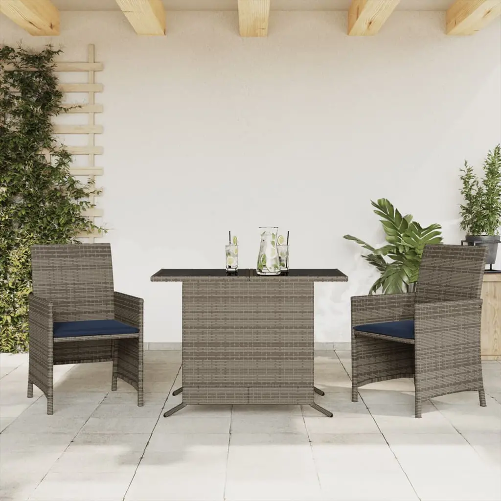This 3-Piece Bistro Set is perfect for anyone who loves to dine outside in comfort and style. Its modern look combines grey poly rattan and a tempered glass top, making it a fab way to spruce up your outdoor spots, whether it’s a balcony, garden, or patio. It's great for small gatherings or a laid-back coffee with friends, fitting easily into any setting while providing cozy seating for up to 2 adults. This set includes two chairs and a table designed to enhance your outdoor vibe while providing plenty of space for relaxing and dining.The powder-coated steel frame is built for durability, making it perfect for outdoor use and keeping rust at bay.Stylish navy blue cushions add a splash of color and extra comfort during long hangouts, ideal for chatting or gatherings.The sleek tempered glass top is easy to clean, simplifying your maintenance routine.With its compact design, this Bistro Set fits well in tighter spaces, helping you create a lovely outdoor dining area without losing style.