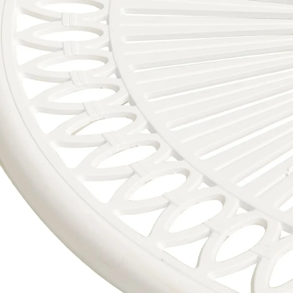 This stylish bistro set mixes elegance with function, making it a great fit for any outdoor area. The classic round table and matching chairs in sleek white create a lovely vibe for dining, reading, and chilling on your patio or balcony. Durable Construction: Made from cast aluminum for lasting strength.Rust-Resistant Finish: Coated to shield against rust and weather wear.Versatile Use: Perfect for both intimate hangouts and solo chill time.Elegant Aesthetic: Has a lovely design that vibes with any garden decor.Light and Easy: Lightweight bits make it a breeze to move around.