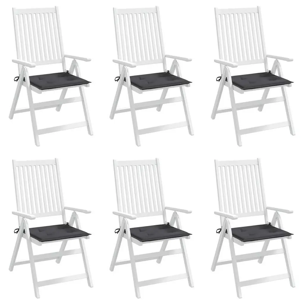 This set of 6 Gray garden chair cushions adds a sleek and stylish touch to your outdoor and indoor seating. Made from high-quality Oxford fabric, these cushions not only offer comfort but also elevate your patio or living room with their modern design and neutral color, fitting in perfectly with any style. Water-Resistant Material: These cushions have got a water-repellent treatment, so you can enjoy your outdoor furniture without fretting about surprise rain showers. This feature helps them last longer, making them perfect for regular outdoor use. Breathable Fabric: Made from 100% polyester, these cushions let air flow through, keeping things cool and comfortable when it's hot outside. The fabric is also easy to clean. Non-Slip Design: Each cushion comes with secure ropes, ensuring they stick to your garden or patio chairs. This feature means safety and comfort when you're just chilling or hosting pals. Stylish Appearance: With a modern gray color, these cushions blend into any outdoor chill zone or indoor scene. They level up your furniture and overall style, perfect for any gathering. Multi-Usage: Great for gardens, patios, and dining indoors, these cushions supply comfort wherever you need it. They're made to fit most chairs, adding a touch of flair to your relaxation spots.
