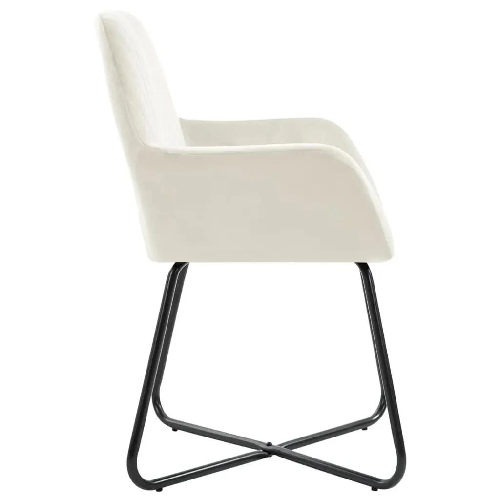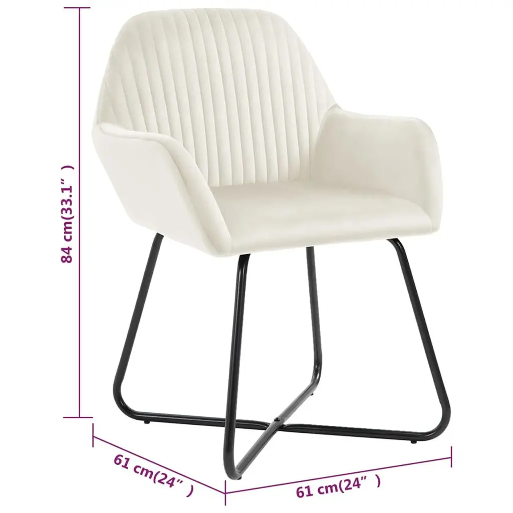 This set of dining chairs is all about modern elegance with its sleek lines and comfy cream velvet upholstery, making it great for dining rooms and living spaces. They come with a contemporary design and plush padding, so they not only improve your decor but also provide a nice seating experience perfect for family gatherings or casual meals. Elegant Velvet Finish: Soft cream velvet upholstery gives any room a classy touch. Sturdy Steel Construction: Each chair has a strong powder-coated steel frame to handle everyday use and stop rust. Heavily Cushioned for Comfort: Padded armrests and seat make sitting enjoyable. Classic Neutral Color: Cream color adds warmth and suits various interior styles. Easy Maintenance: Just wipe with a damp cloth to keep these chairs looking good as new, prolonging their life.