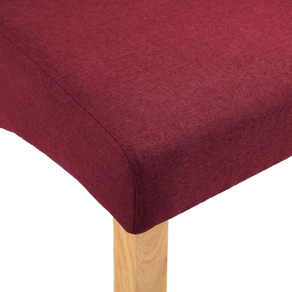 This set of dining chairs features a contemporary design that’s perfect for adding style and practicality to your dining or living room. The bright red fabric is eye-catching and instantly livens up your space, creating a welcoming vibe for meals or gatherings. Each chair is designed for top comfort, letting you hang around the dining table or in your living area for ages.Crafted from durable natural wood, these chairs are built to last, staying sturdy even with daily use.The vibrant red upholstery not only spruces up the place but is also breathable and smooth, enhancing your seating experience.Perfect for dining and casual lounging, these chairs fit seamlessly into modern homes, whether enjoying meals with friends or relaxing with a great book.Easy maintenance helps keep your chairs looking fresh—just vacuum and wipe spills quickly to keep them practical for everyday life.