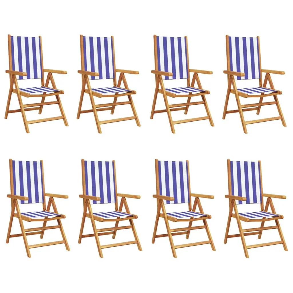 This set of folding garden chairs is spot on for outdoor dining, combining style and practicality. Made from solid acacia wood and textilene fabric, these chairs come in a fresh blue color that brightens up your patio, garden, or balcony, blending beautifully with the outdoors. Adjustable Comfort: The multi-position backrest lets you choose from five comfy angles, so you can kick back or dine just how you like.Durable Materials: Made from solid acacia wood, these chairs hold up well outside while looking fab. The textilene fabric adds extra comfort and is UV and water-resistant, making it ideal for summer.Foldable Design: You can fold these chairs up for compact storage when not in use, which is a great feature for smaller patios or gardens. Plus, they’re easy to take along for picnics or camping.Elegant Style: With a lovely farmhouse style, these chairs not only work well but also glam up your outdoor spaces. Their smooth finish and eye-catching color make them a brilliant addition to any patio or garden setting.Set of Six: This product comes as a set of six folding garden chairs, making sure plenty of seating is available for family and friends at outdoor meals or gatherings. Each chair supports up to 242.5 lb, which is perfect for adults.