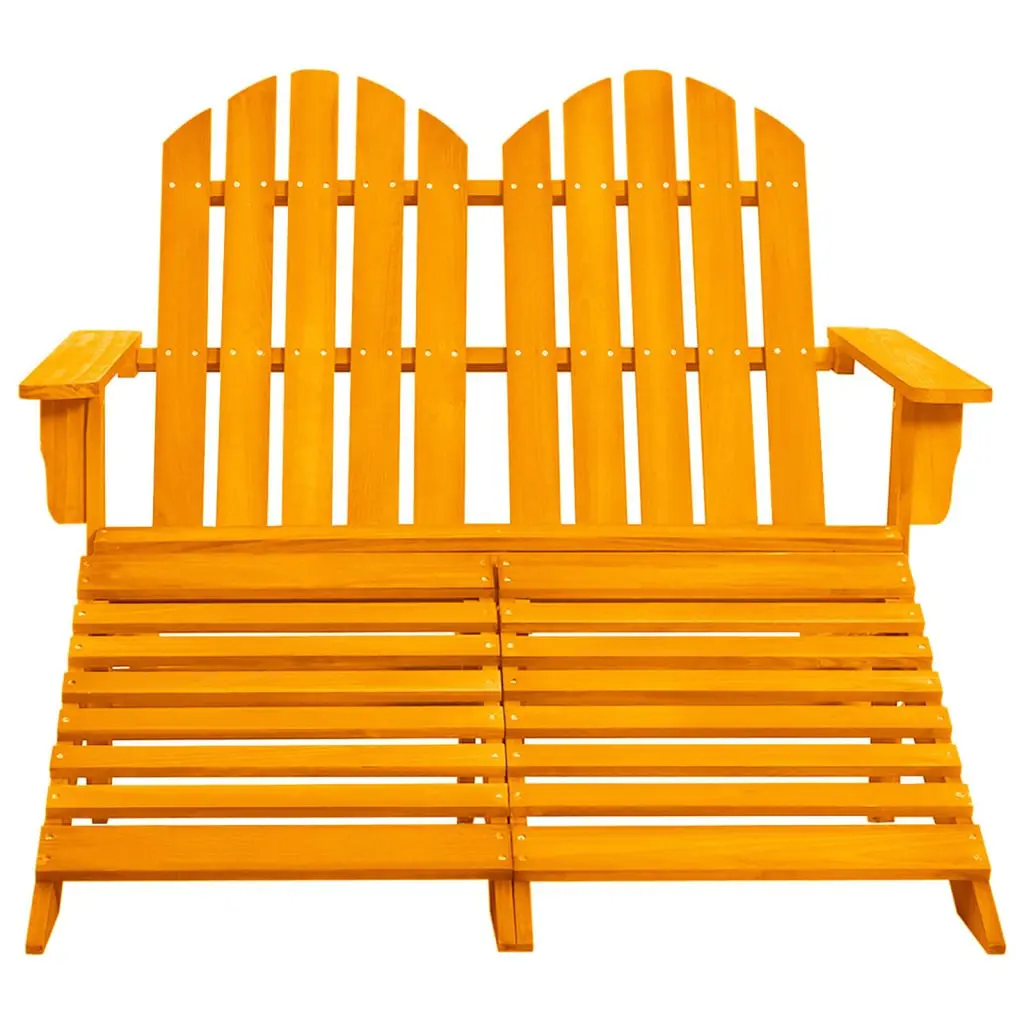 This 2-seater garden Adirondack chair with an ottoman is perfect for any outdoor space, mixing comfort with a charming design. Whether on the patio, in the garden, or on the terrace, its bright orange finish adds a lively touch while creating a comfy spot to unwind. Durable Structure: Made from solid fir wood, this chair is built to last and can handle the outdoor life with ease. Its sturdy design means you can enjoy it for years, making it a smart pick for your garden.Elegant Design: The classic Adirondack style features a slanted back and wide arms, giving you comfort and charm. Its timeless look fits perfectly in any outdoor setting, enhancing your space.Versatile Seating: The detachable ottoman offers multiple configurations, making it ideal for lounging or reading. You can easily rearrange your seating for maximum comfort.Weather-Resistant Finish: Treated to withstand rain and sun, this piece stays beautiful across all seasons. It’s made to keep your outdoor space inviting, no matter the weather.Caring Instructions: Just a little maintenance is needed to keep this chair looking great - a quick clean with soap will do the trick, ensuring its beauty lasts.