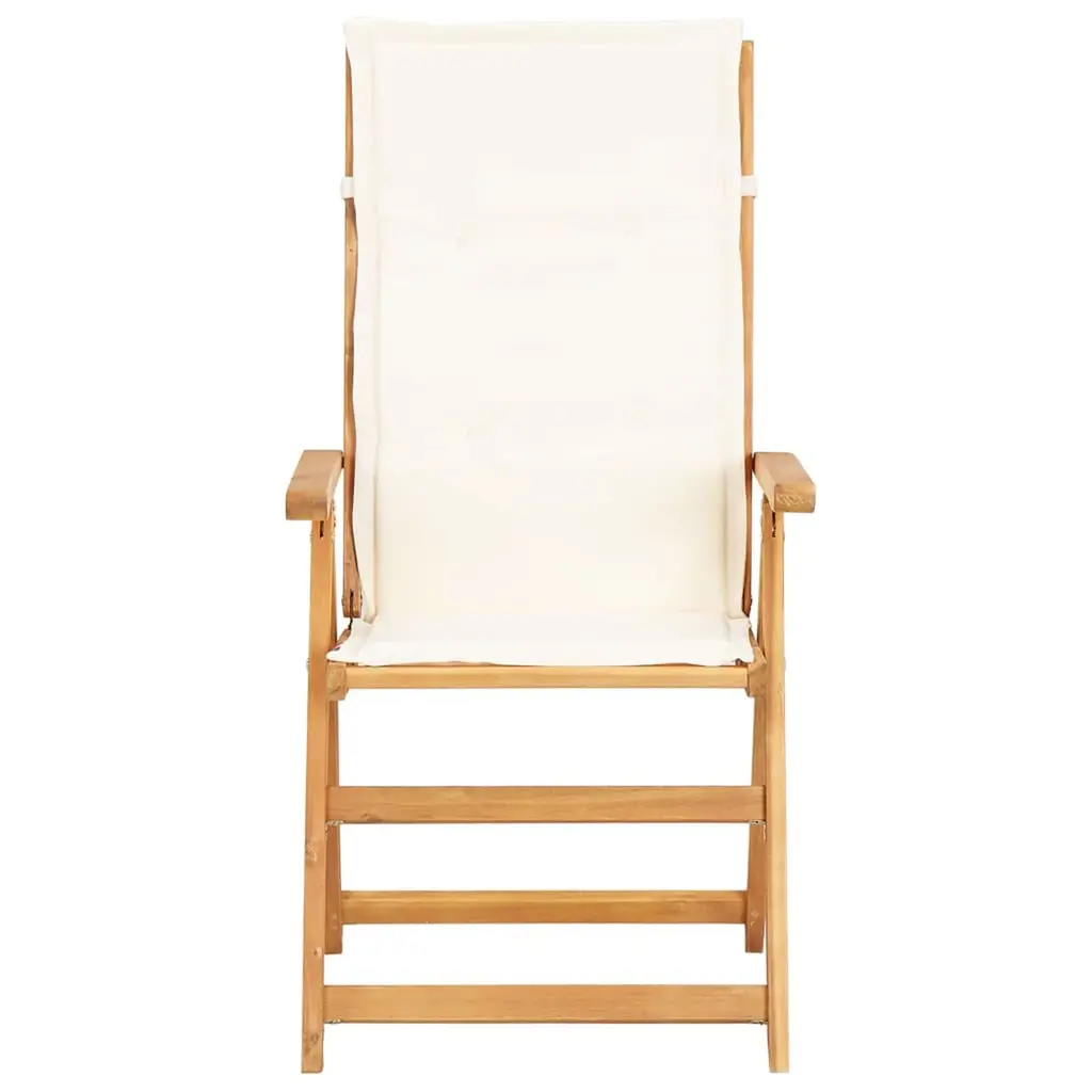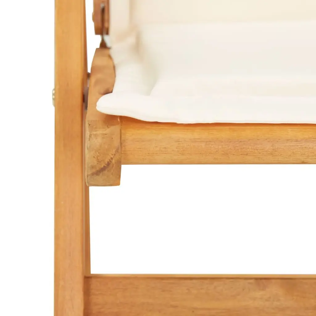 This set of Adjustable Reclining Garden Chairs is made for anywhere, inside or outside! They've got a trendy look that'll fit right in on any patio or balcony. Crafted from solid acacia wood, they’ve got a lovely feel and classy finish, creating a warm spot for relaxing or having a chat with family and friends. With an adjustable backrest, you can kick back in five different positions, making sure you're comfy. The strong acacia wood frame is super tough and built to last, perfect for outdoor use. They fold up easily for storage, great for saving space when you're not using them. The weather-resistant cushions let you leave them outside without stressing about nature's surprises. Each chair’s got a depth of 23.2 in and width of 22.4 in, making them just the right fit for outdoor dining while still being light enough to move around with ease.