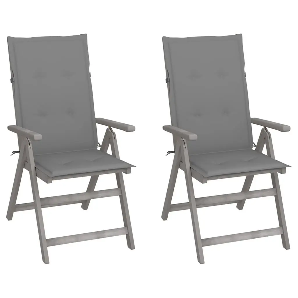 Vidaxl Garden Chair Set Of 2 Grey Solid Acacia Wood Medium