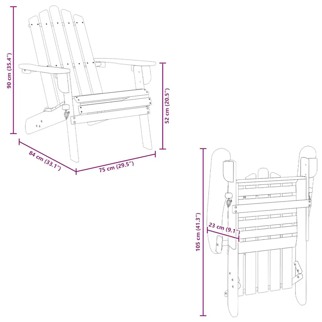 This Adirondack chair set effortlessly blends rustic charm and practical use, perfect for relaxing outside or enjoying time in the garden. Made from strong solid acacia wood, these chairs are not just good-looking but comfy as well, making them a top choice for patios, balconies, and gardens. The folding design allows for versatile use and effortless storage; easily set up or pack away after your outdoor activities.Made from solid acacia wood, these chairs are built to handle the outdoors, so they last even when the weather isn't on your side.The wide armrests give you plenty of space for your drinks, snacks, or personal items, making your relaxation time more enjoyable.Oiled to keep its nice brown color, the finish not only protects the wood but also gives a smooth feel and looks great in any spot.This product is made for outdoor fun, with a warm rustic look that fits perfectly in gardens and outdoor areas.