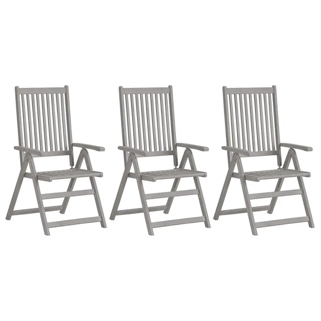 Vidaxl Garden Chair Set Of 3 Grey Solid Acacia Wood, 100% Polyester