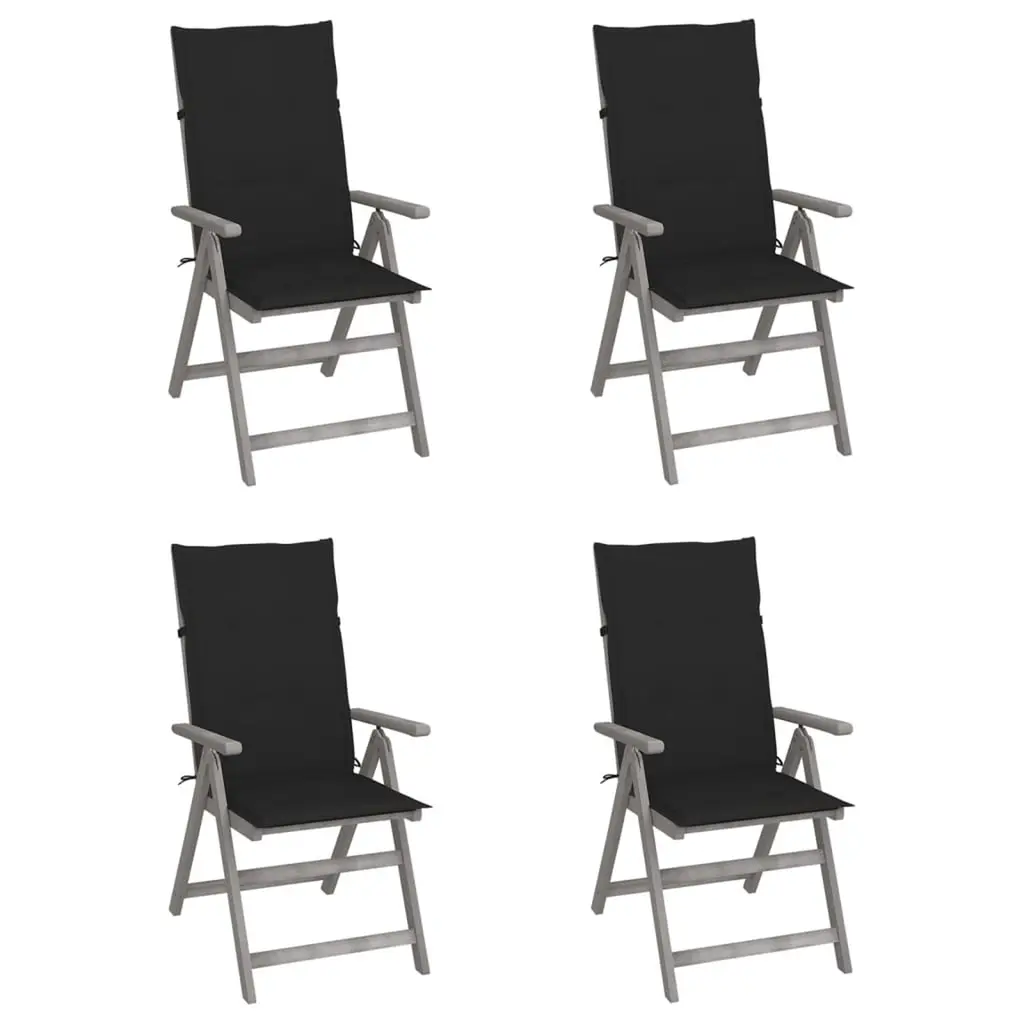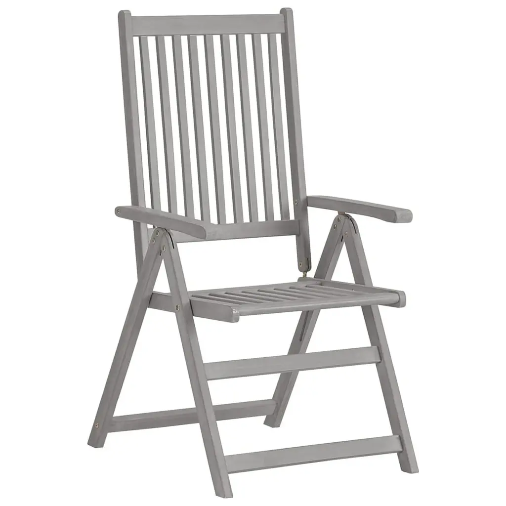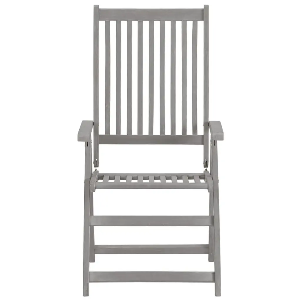 This garden reclining chair set is all about merging function with style, making it spot on for any outdoor space. Made from solid acacia wood, these chairs sport a sleek design highlighted by grey and taupe shades, helping them blend right in with any patio, balcony or garden. Elegant Design: The minimalist vibe with smooth surfaces gives a posh touch to outdoor furniture. The grey finish brings out the wood's natural beauty, adding class.Five Adjustable Positions: These chairs offer five positions for a comfy sit, whether you're lounging or dining outside. Perfect for finding your ideal angle to chill.Robust Construction: Made from solid acacia wood, these chairs are built to last and can handle the outdoors. Acacia's natural resistance to decay makes it a top pick for outdoor use.Waterproof Cushions: Each chair comes with thick cushions for added comfort, made from waterproof fabric to keep them looking pristine, even outside.Versatile Use: Great for gardens, patios, or balconies, these chairs are spot on for relaxing or enjoying meals. They fit effortlessly into different outdoor activities, whether you’re hosting a summer do or sipping coffee quietly in the morning.