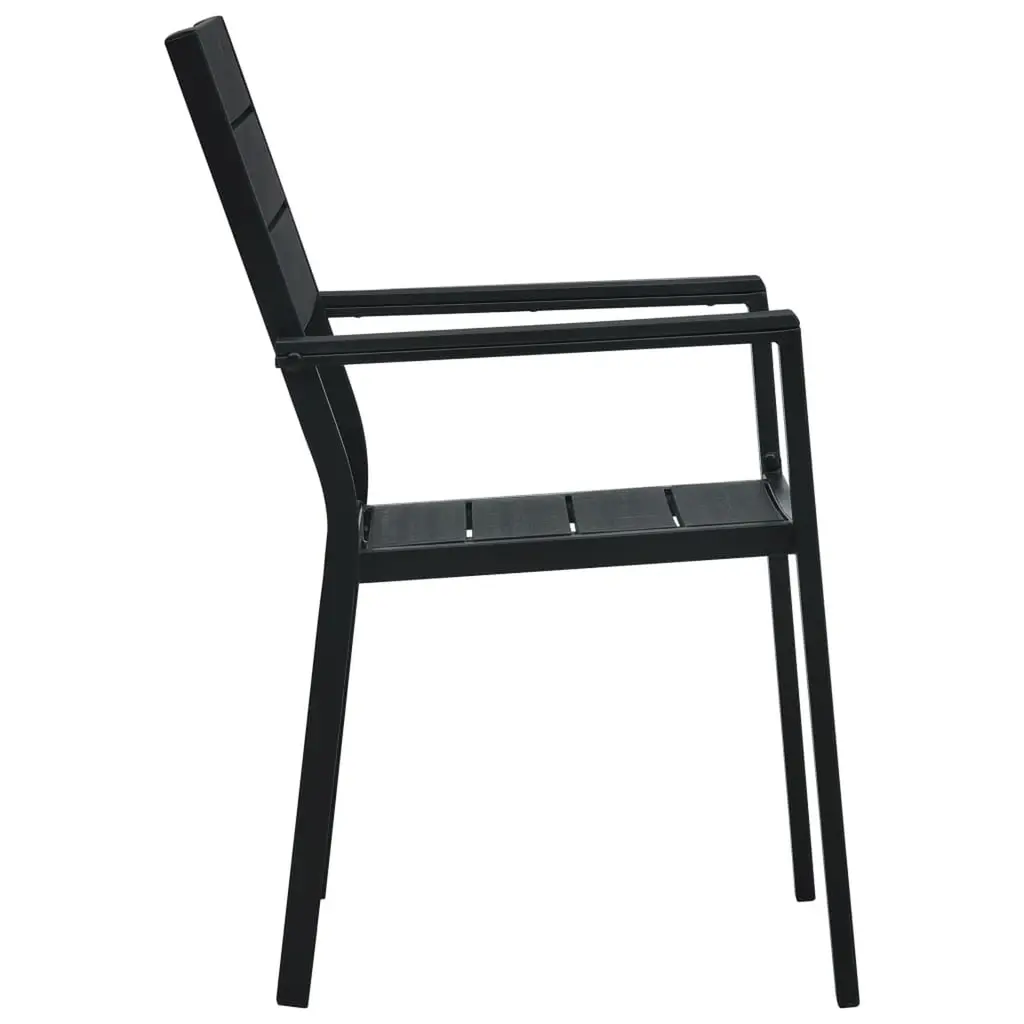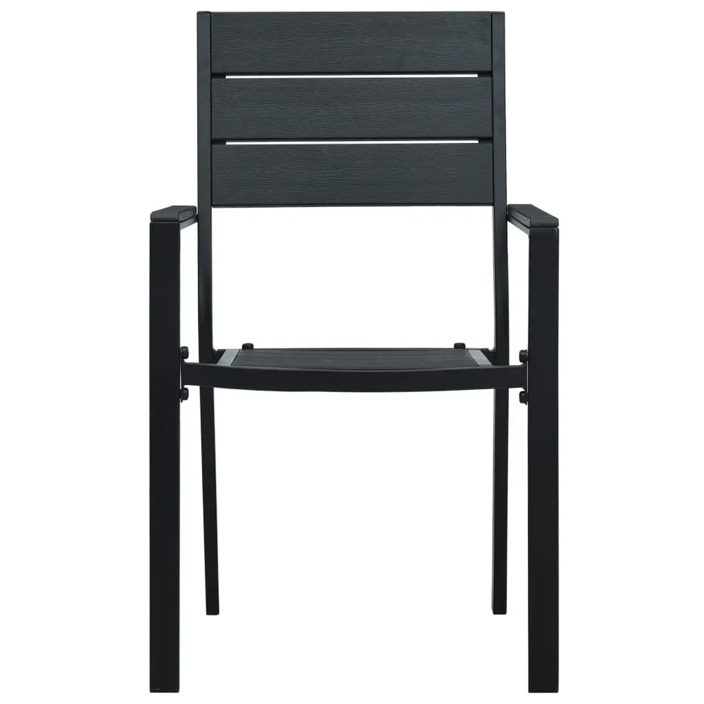 This set of four garden chairs is where style meets functionality, perfect for kicking back in your garden, patio, or even on the balcony. With a contemporary look, these chairs are not just a pretty face; they’re comfy too, making them ideal for hosting casual outdoor get-togethers or simply lounging in the sun. Sturdy Construction: Built with high-density polyethylene (HDPE) and steel, these chairs are stable and resistant to tipping over. They're perfect for heavy use, letting you enjoy countless outdoor get-togethers without stressing. Stylish Look: With a matte black finish that resembles wood, these chairs add a chic vibe to any outdoor space, whether it's a formal dinner, a BBQ, or just a casual gathering. Easy Maintenance: Just wipe the chairs down with a dry cloth, and they’re ready to go. They handle the weather well, meaning you can spend more time enjoying your outdoor area instead of worrying about cleaning. Versatile Use: Perfect for gardens, patios, balconies, and conservatories, these chairs are adaptable for all sorts of settings. They're perfect for any outdoor gathering you have in mind. Comfortable Seating: Each chair is spacious and comfy, great for longer stays outside, inviting you and your guests to really relax.