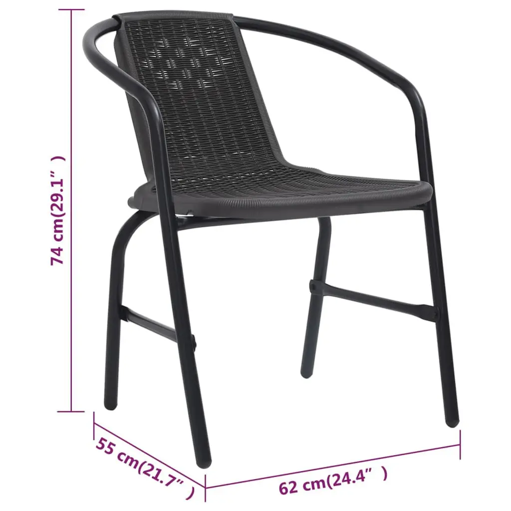 This set of modern garden chairs really spruces up outdoor spaces with a blend of style and practicality. Made from tough materials, these chairs sport a chic rattan design paired with a steel frame, making them just right for various spots like balconies, gardens, and conservatories where comfort and looks matter. Stackable design for easy storage when not in use.Sturdy steel frame and UV resistant materials for reliable outdoor use.Versatile for indoor dining and outdoor gatherings.Smooth textures with a matte finish for a stylish touch.242.5 lbs weight capacity ensures strong support for typical outdoor use.