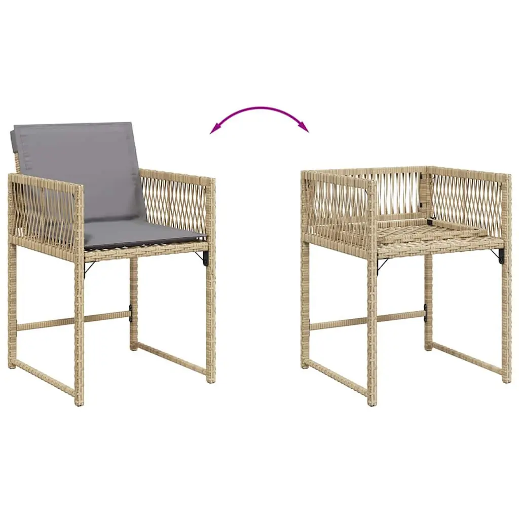 This garden chair set is all about style and comfort, making it a great addition to any outdoor dining space. With its modern design and neutral colors, these chairs are made from durable poly rattan and come with comfy cushions, making them perfect for backyard get-togethers, patio brunches, or peaceful moments on the balcony. 【Adjustable Design】 The foldable design allows these chairs to lay flat for easy storage—handy for home or when you're off to a picnic.【Weather-Resistant】 Made with UV-proof and water-resistant materials, these chairs are perfect for outdoor use so you can chill outside without worrying about the weather.【Comfort Focused】 Enjoy long sittings with the plush outdoor cushions that come with a zipper for easy removal. Cleaning is a breeze so your chairs stay looking good.【Sturdy Construction】 The strong powder-coated steel frame offers top stability and durability, supporting a max weight of 242.5 lbs. These chairs will be your reliable seating for years.【Modern Aesthetic】 The sleek lines and neutral beige tones fit in well with any outdoor decor. They enhance your patios, gardens, and balconies without upstaging your existing style.