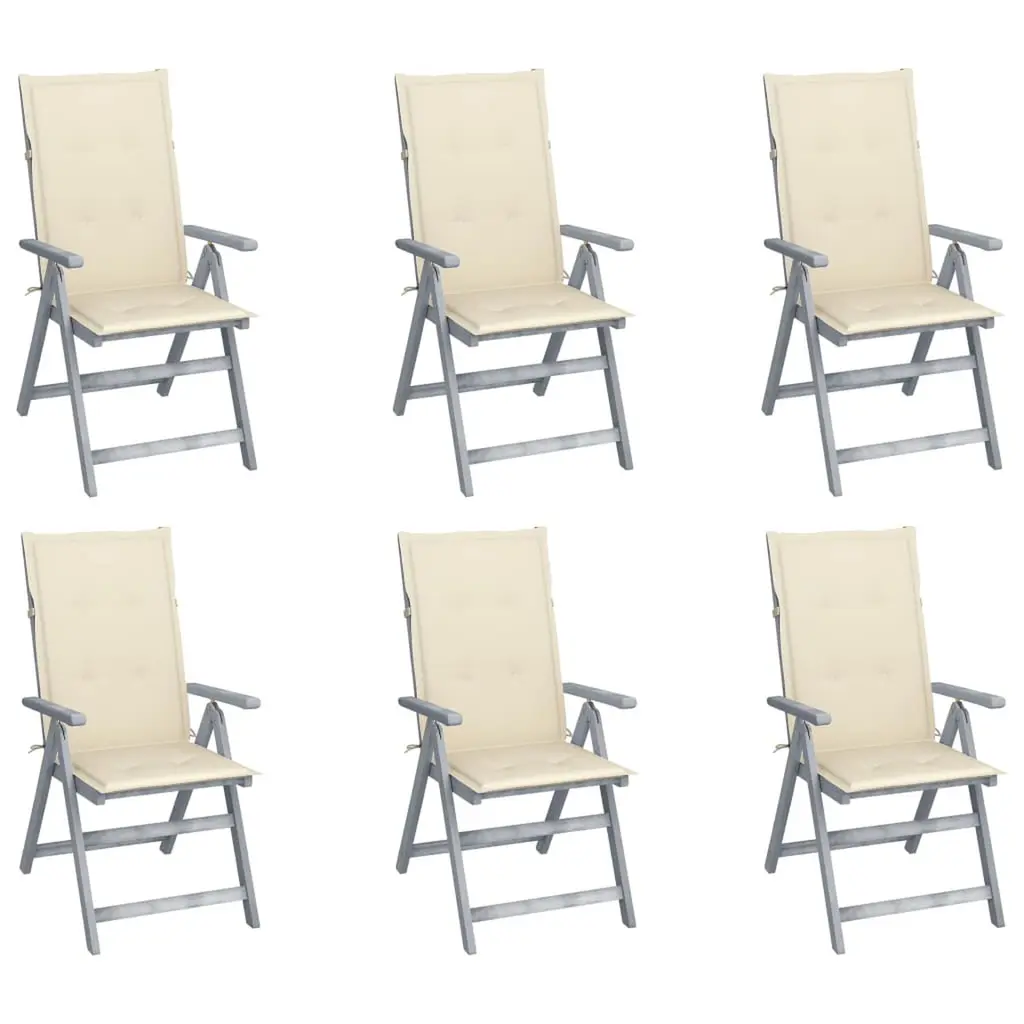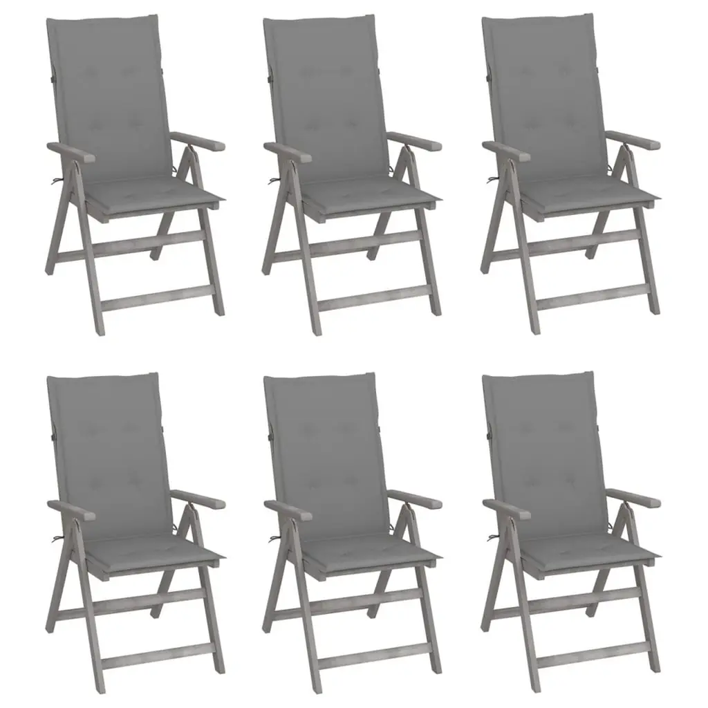Vidaxl Garden Chair Set Of 6 Grey Solid Acacia Wood Medium Foldable