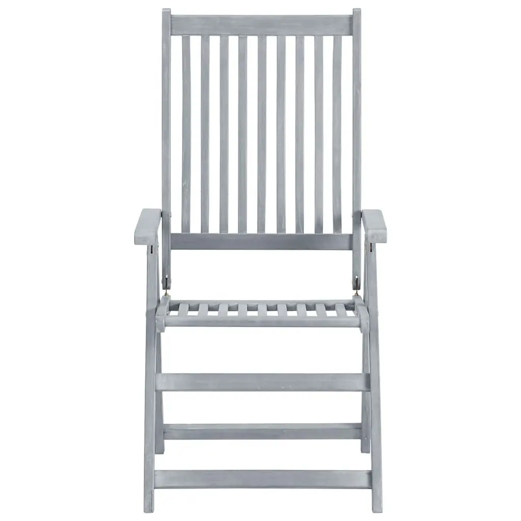 This luxury set of 6 garden reclining chairs adds a bit of class to your outdoor setup, giving you both comfort and style. Made from solid Acacia wood, these chairs feature smooth lines and a modern touch, making them a good fit for balconies, patios, or garden parties, whether you're chilling in the sun or entertaining friends. The solid Acacia wood construction ensures long-lasting durability, able to withstand various weather conditions without compromising on stability or aesthetic appeal.Each chair includes a plush cushion covered in 100% polyester, making sitting for extended periods a delight, whether hosting a barbecue or simply enjoying your morning coffee.With its five adjustable reclining positions, every guest can customize their seating experience, allowing you to transition seamlessly from dining to lounging.The modern design, with a subtle grey and taupe color palette, complements any outdoor décor, enriching the ambiance of your living space while providing practical seating.These chairs occupy a standard size yet offer ample comfort and support, making them ideal for all adults, accommodating a maximum weight of 330.7 lbs safely.