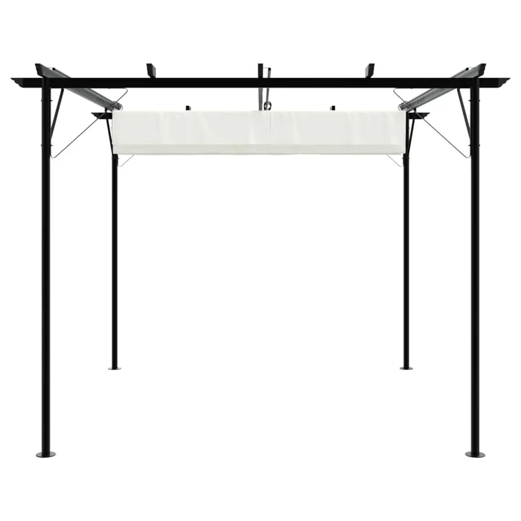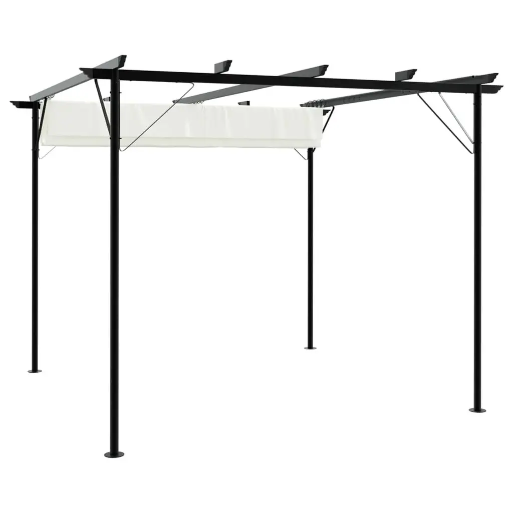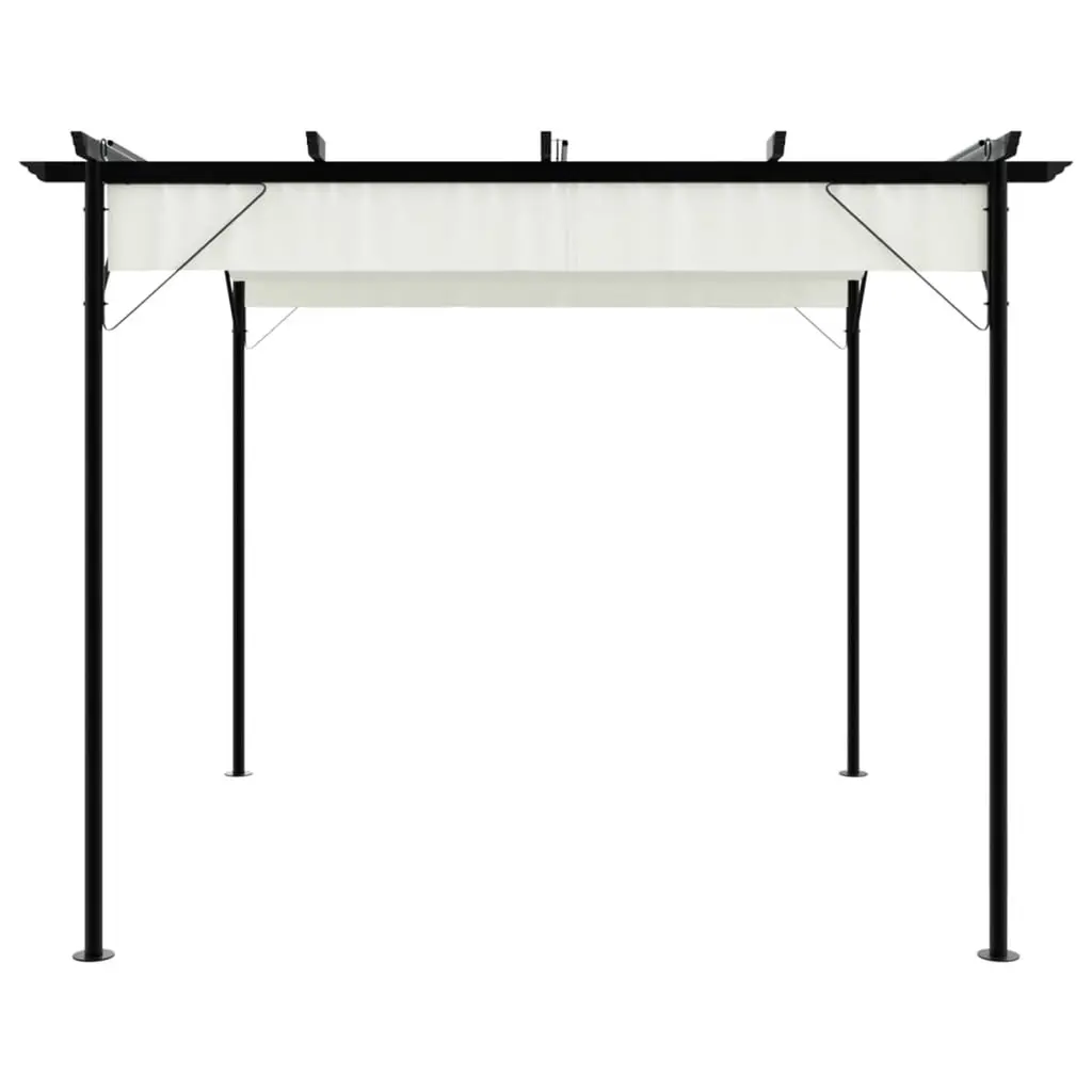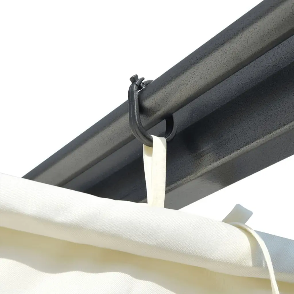 This fabulous garden pergola adds style and practicality, turning your outdoor area into a classy chill-out zone. With its lovely cream white finish, it fits right in with any modern garden or patio setup, creating a warm vibe that makes you want to enjoy the outdoors. The adjustable retractable roof lets you tweak how much shade you want depending on the time of day and weather, keeping things comfy no matter the season. Just pull or retract the roof to create a cozy vibe for eating or lounging.Built using powder-coated steel, this pergola is super tough and strong, won't rust, and can handle the weather, so it’ll last for ages.The water-resistant polyester with PA coating makes it practical, providing shelter from surprise rain while keeping it looking sleek and elegant.With an ample 9.8 x 9.8 ft size, it offers a generous shaded area that’s great for dining sets, lounge chairs, or gatherings with family and friends.Putting it together is a breeze, needing just a screwdriver and a spanner, with all parts and anchors included, so two people can get it set up quickly and easily.