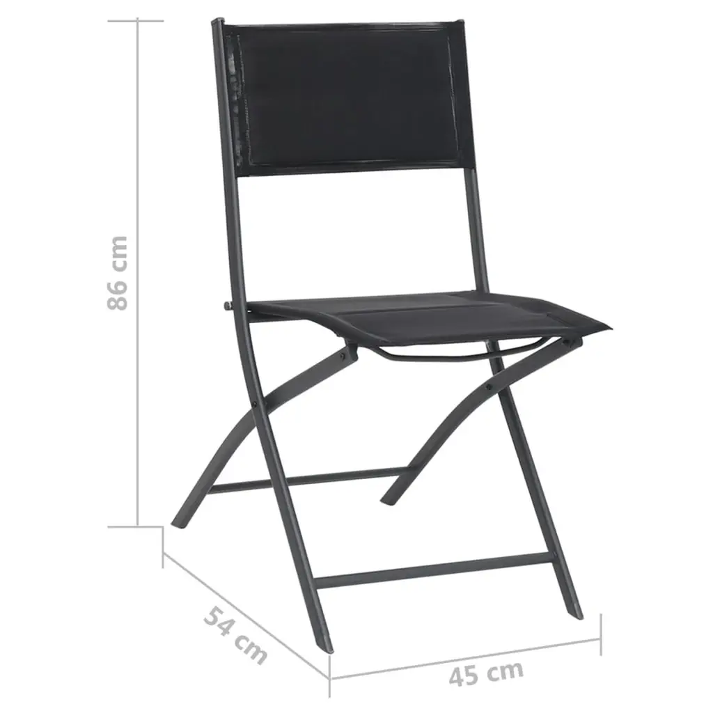 This Folding Outdoor Chair set has a sleek and modern vibe, perfect for both indoor and outdoor use. They make a stylish addition to balconies, patios, or living rooms. With a sturdy rectangular shape and clean lines, these chairs fit right in with an industrial look that works with any decor, while keeping things comfy during meals and gatherings. Versatile Design: These chairs are made for both indoor and outdoor fun, whether you're having meals on the patio or chilling in the garden. They’ve got a modern style that fits right in anywhere, creating a lovely vibe.Space-Saving: Thanks to their foldable feature, these chairs can easily collapse down for quick storage. A real win for anyone short on space, making it easy to use your area smartly when the chairs are not in play.Durable Construction: Made with a strong powder-coated steel frame, these chairs fight off rust and wear, making sure they'll last through all kinds of weather. A solid choice for everyday use.Comfortable Seating: Covered in water-resistant textilene, these chairs are super comfy for hours of sitting. The breathable material makes for a nice seating experience, perfect for outdoor dining or just relaxing.Recommended for Entertaining: Just right for family meals or outdoor barbecues, these chairs fit in beautifully with all kinds of social events. Each chair seats one person, ensuring everyone gets some personal space while still looking good.