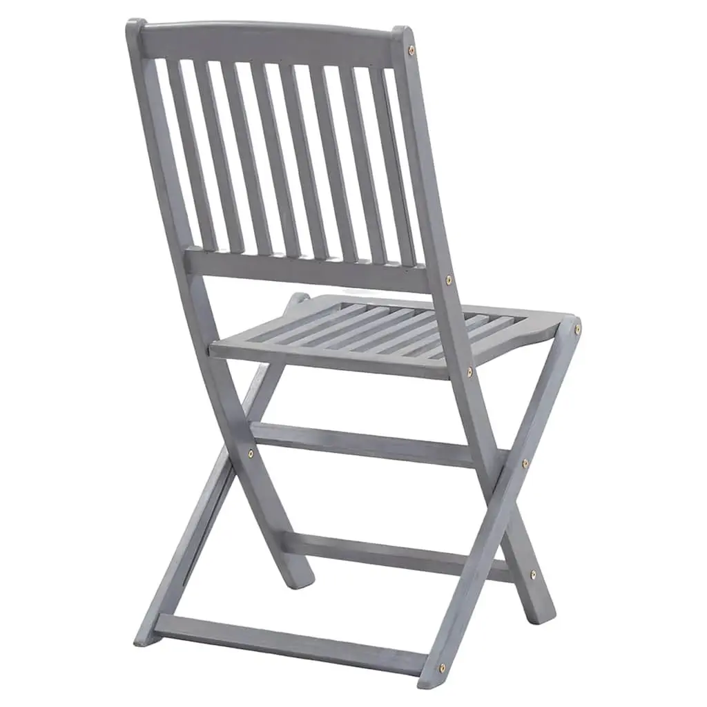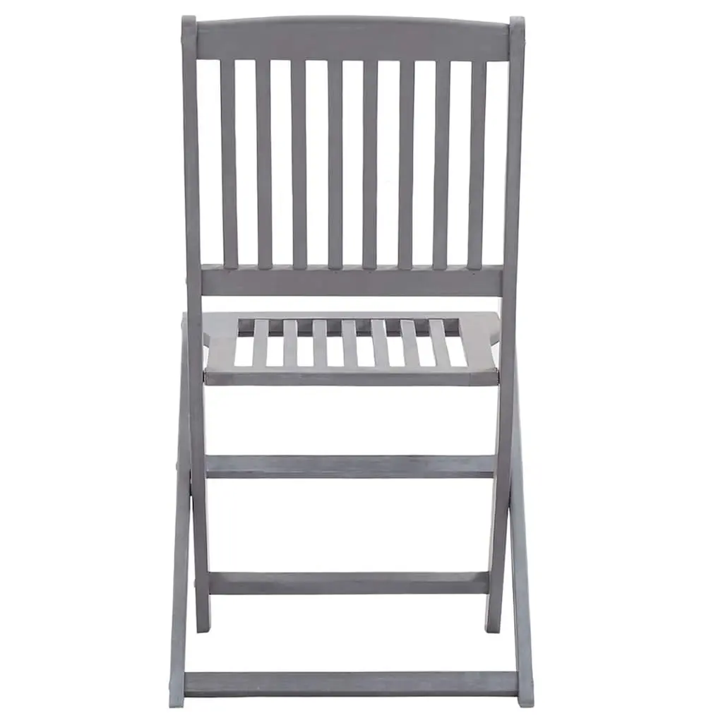 This Folding Outdoor Chairs set combines functionality and style, giving you comfy seating for any environment. Perfect for balconies, patios, or dining spots, these chairs add a modern touch to your outdoor dining with their smooth grey finish and adjustable features. Comfortable Seating: These chairs are designed for one person, offering a sturdy, secure spot for long meals or relaxed hangs. The smooth surface is nice to the touch, inviting everyone to enjoy the outdoors.Easy Storage: Foldable design means you can collapse and stow them away easily when not in use—perfect for smaller spaces or occasional use. It keeps your space tidy while remaining accessible.Sturdy Construction: Crafted from solid acacia wood, these chairs are built to last. This quality material stands up to the elements, ensuring they'll be a long-term part of your outdoor furniture.Stylish Aesthetic: The weathered grey finish adds a rustic charm to any area. With a contemporary design, they fit right into both casual and formal setups, enhancing the look of your dining space.Multi-Purpose Usage: Great for dining, garden parties, or just chilling outside. These outdoor chairs meet a wide variety of activities while keeping comfort and durability in mind.
