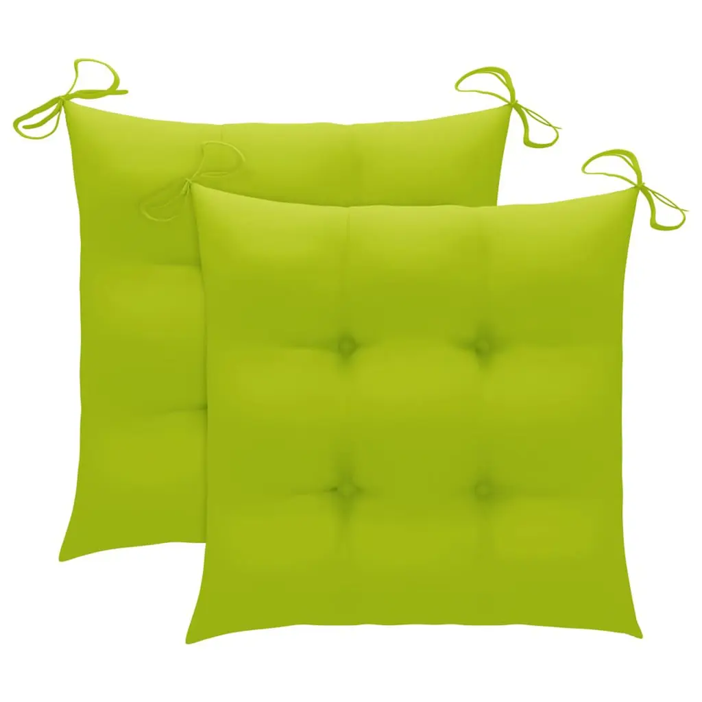 This patio chair set beautifully combines functionality and style, featuring solid teak wood construction and bright green cushions that invite relaxation and elegance in outdoor settings. Its rustic charm is perfect for patios, gardens or balcony dining, bringing a touch of nature's beauty that makes every outdoor gathering a pleasurable experience. Solid Construction: Made from solid teak wood, these chairs not only highlight eco-friendly design but also ensure long-lasting durability in various weather conditions.Elegant Cushioning: The included bright green cushions are crafted from weather-resistant polyester, providing you with comfort and charm needed for long hours outdoors.Space-Saving Design: The stackable feature allows for easy storage, making them practical for both commercial and residential spaces where storage might be limited.Versatile Use: Ideal for various outdoor settings, these chairs fit perfectly in gardens, on terraces, or as part of patio dining arrangements, enhancing your relaxation time.Easy Maintenance: With a simple wipe-down using a damp cloth, these chairs' natural wood finish maintains its stunning look, while regular occasional sanding and teak oil application keep it pristine.