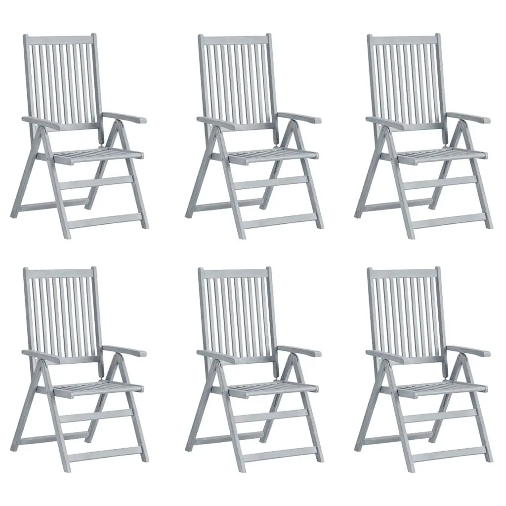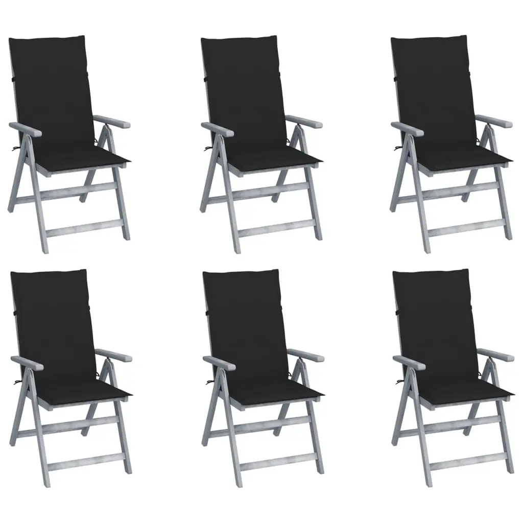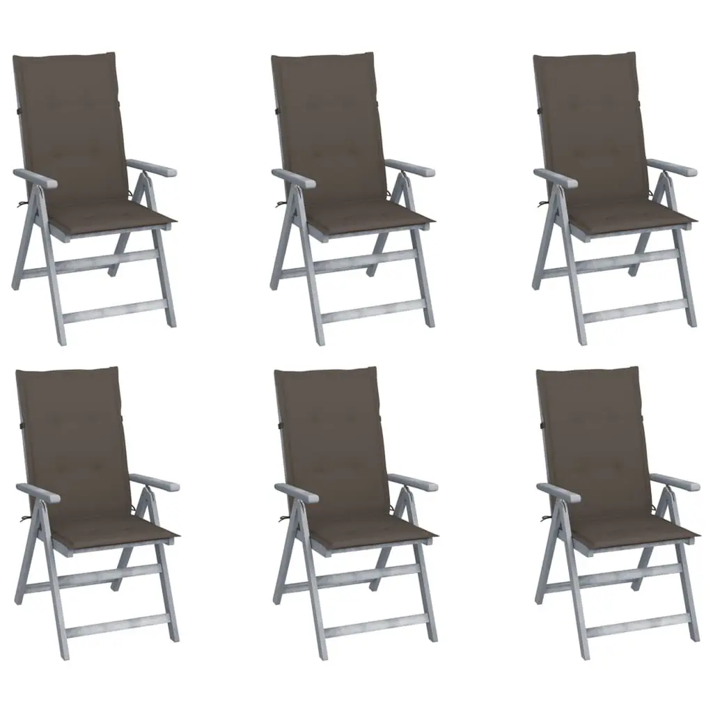 Vidaxl Patio Chair Set Of 6 Gray Solid Acacia Wood, 100% Polyester