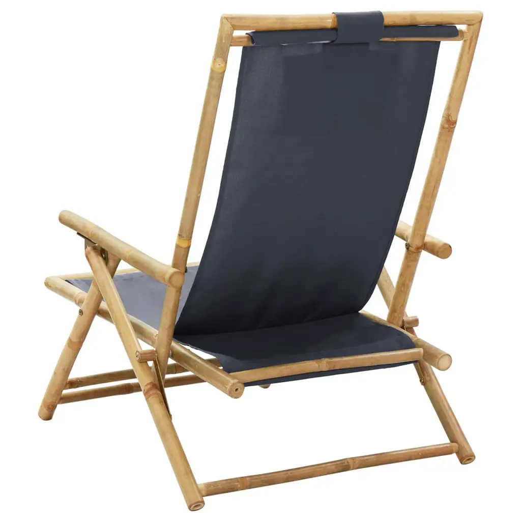 This Reclining Relaxing Chair really adds to any outdoor vibe, perfect for those sunny afternoons or lazy evenings. Dressed in a smart dark grey, this sturdy chair is made from bamboo and breathable polyester fabric, offering a nice mix of style and comfy living. **Comfortable Seating:** The chair's adjustable backrest lets you find your sweet spot, making it perfect for everything from reading to chilling. Built solid, this chair keeps you comfy during those long sits, giving you a great outdoor escape. **Stylish and Functional:** Its modern dark grey look not only enhances your outdoor space but also highlights bamboo's natural charm, creating a welcoming vibe. The tidy finish looks fab while keeping things practical. **Versatile Usage:** Perfectly made for gardens, balconies, or patios, this chair fits in anywhere outdoors. Whether you're digging into a good book, taking a coffee break, or having small get-togethers, this chair shines in all relaxation settings. **Space-efficient Design:** Being foldable helps with easy storage when you’re not using it, plus it's lightweight enough to move around. It’s super handy for spontaneous trips or when you need more room at gatherings. **Easy Maintenance:** Its strong materials don’t need much fuss – just a quick clean with soap and a bit of oil now and then keeps it looking good. This means less hassle while keeping it useful for ages.