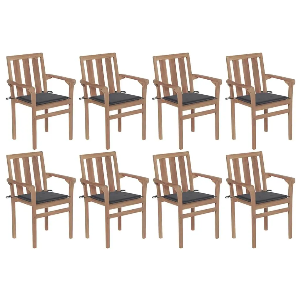Vidaxl Stackable Chair Set Of 8 Warm Brown Solid Teak Wood Standard