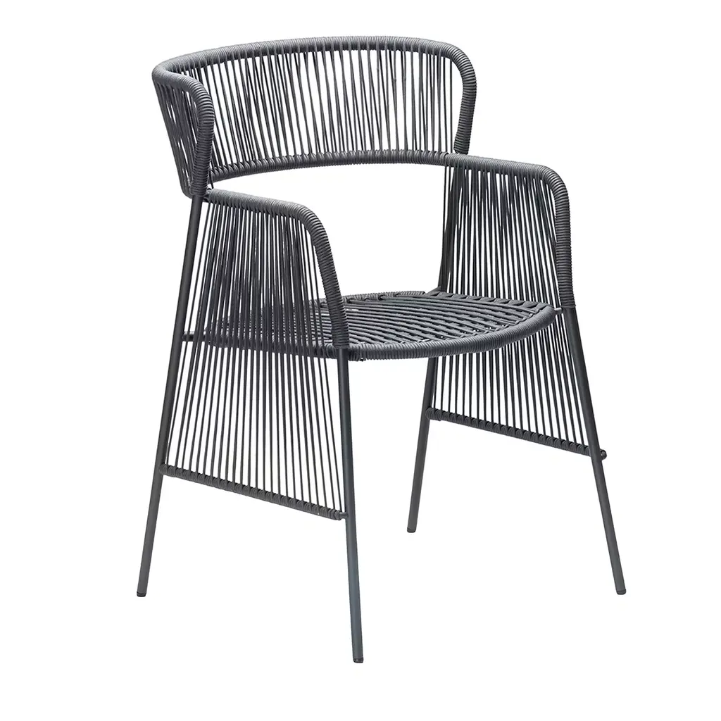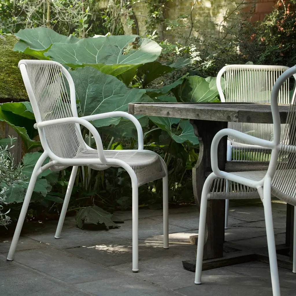 The Loop dining chair is a light and stackable outdoor chair.