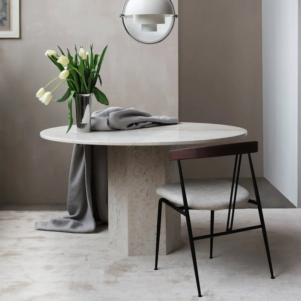 Bring sophistication and style to any space with the Violin Dining Chair from Gubi. A light and elegant chair, its t-back design features two parallel lines extending from the backrest to resemble a violin. Complete with elegant flourishes of detail and powder-coated steel legs, its refined design and generous seat give it an unmistakable character, for an effect that is both classical and contemporary. Highlights Note: Please note that this product is created with natural leather so slight color and pattern variations in materials will appear. Markings on natural leather can differentiate slightly depending on the hide, so no two items are exactly alike.