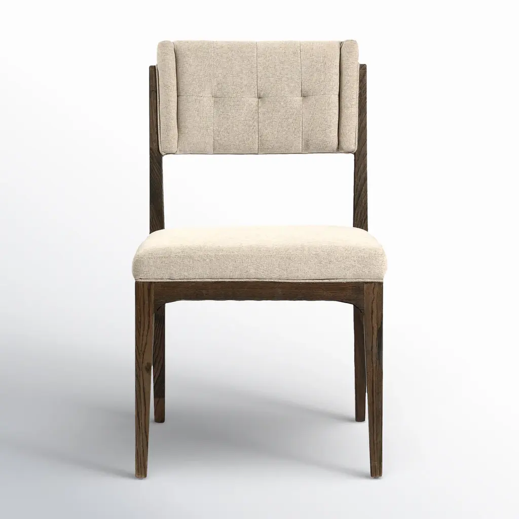 The Vira Side Chair combines sleek, modern design with practical functionality. Crafted from oak, this chair exudes a sense of natural elegance and durability. The seat and backrest are upholstered in performance fabric, which is both water and stain-resistant, ensuring longevity and easy maintenance. The chair's minimalist lines and neutral tones make it a versatile addition to various interior styles, whether contemporary or traditional.