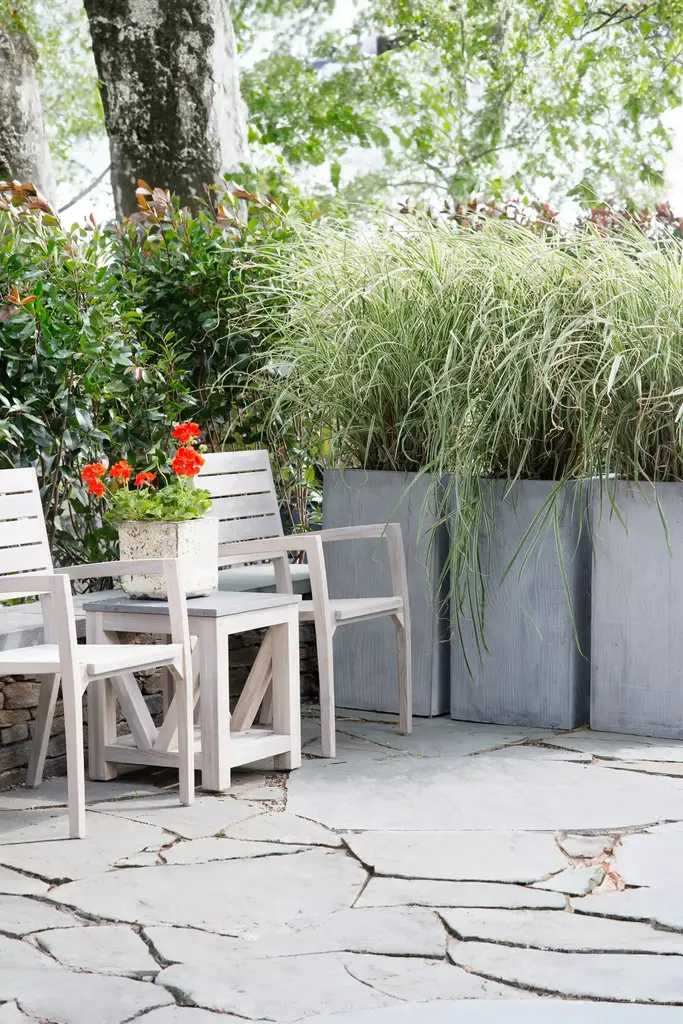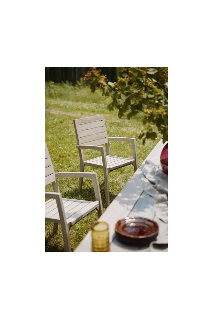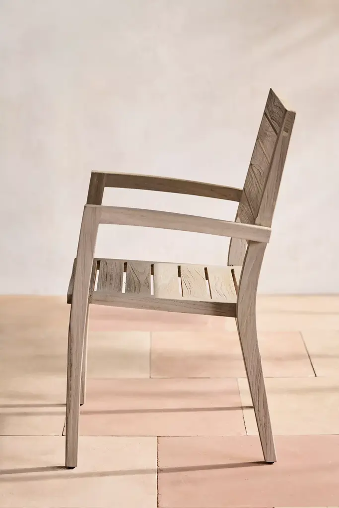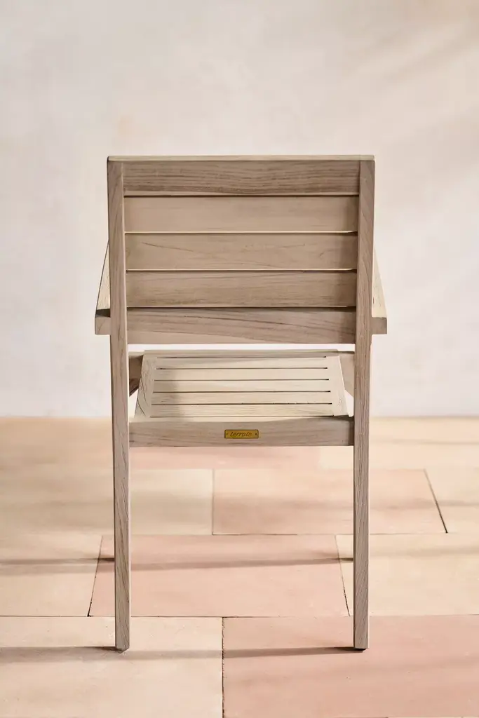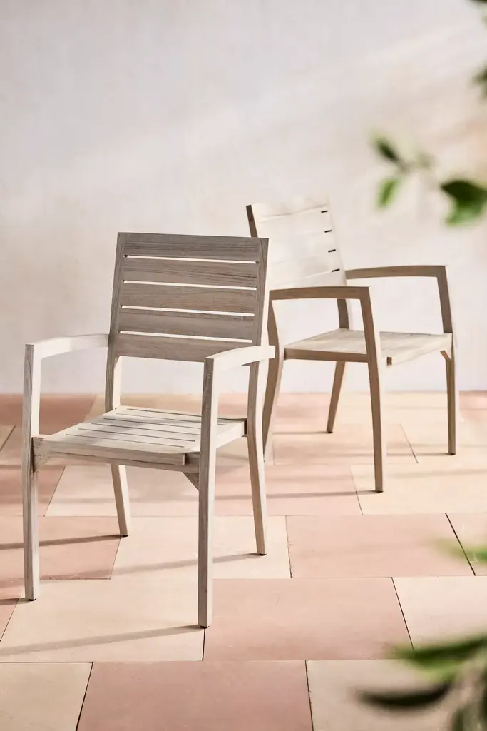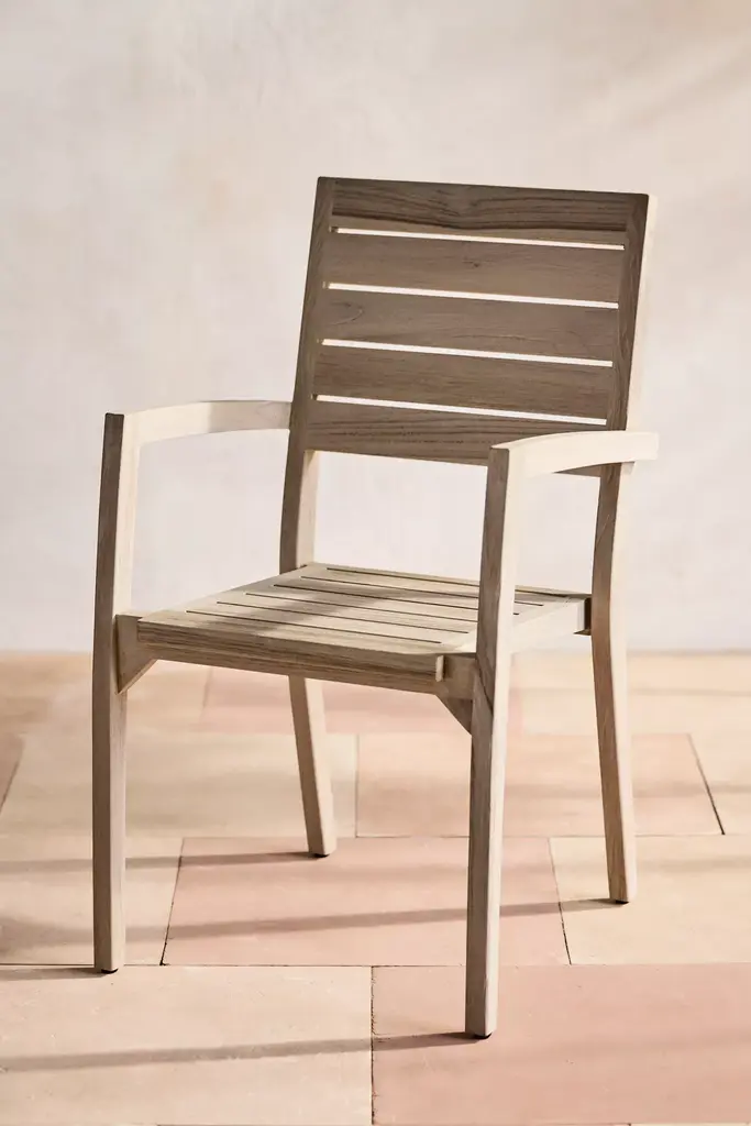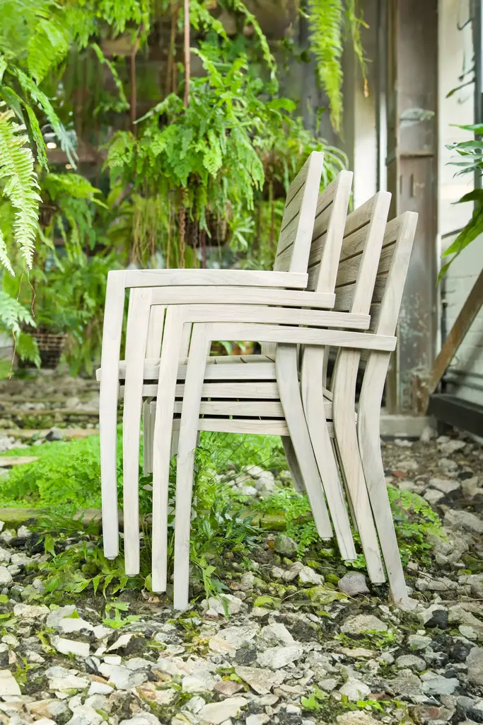 Stackable styling and our Instant Grey + Teak Shield finish make this weather-resistant teak chair a practical choice for occasional seating on the patio or in the garden.