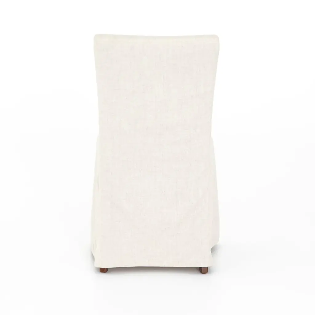 A slipcovered dining chair delights with a tall, enticingly curved silhouette. Ships In 10-14 Business Days Slipcovered design This image is for illustrative purposes only. The colors shown are accurate within the constraints of lighting, photography, and the color accuracy of your screen.
