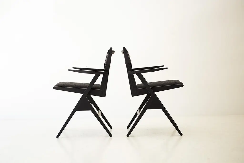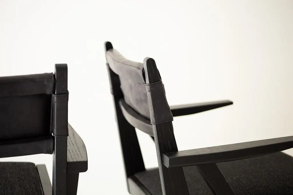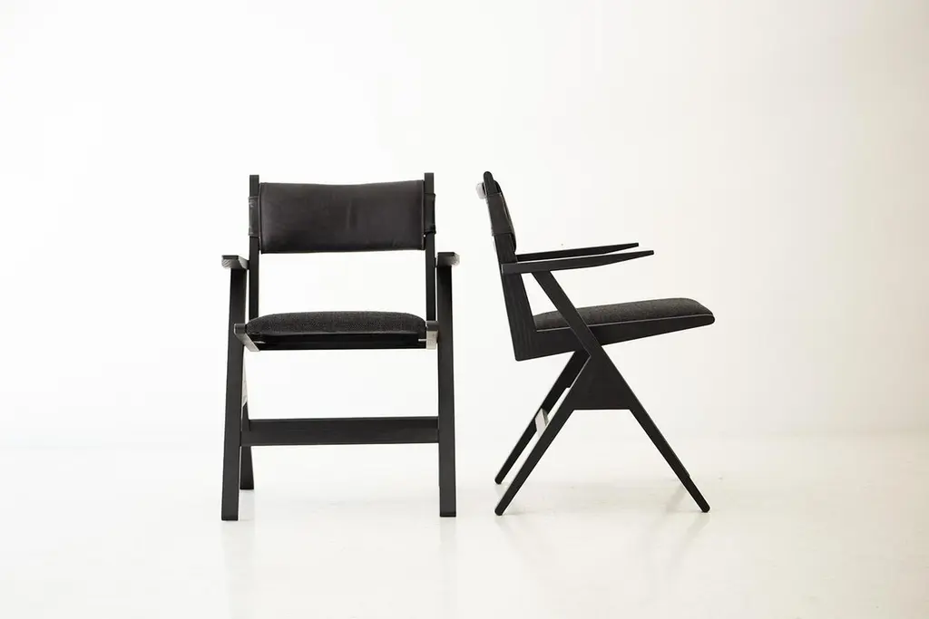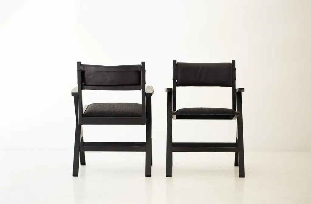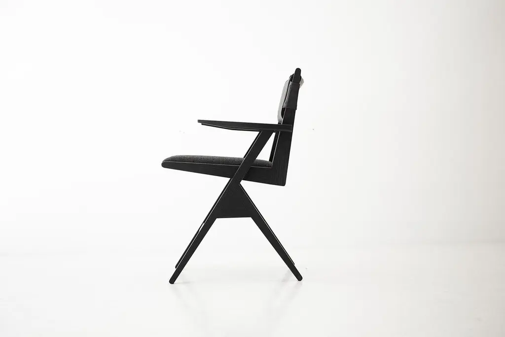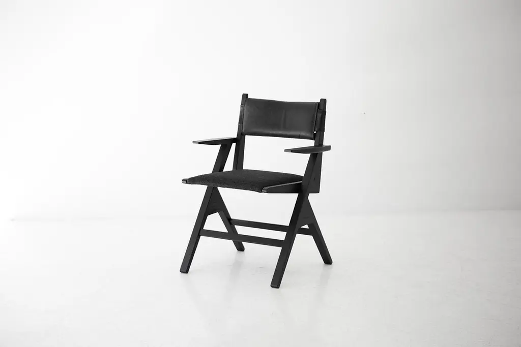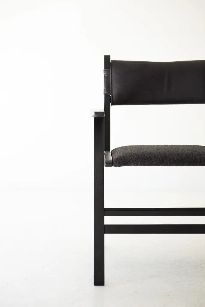 This Vita Modern Dining Chair is beautifully constructed from solid wood in Ohio, USA. The dining chair is modern, architectural, and sleek with a comfortable back and seat. The back is upholstered in a soft, black, high-grade leather. The seat is upholstered in our black thick weave fabric with multiple colors available. COM is also an option. The white oak frame can be kept natural or done in a finish of your choice. This chair is both current and timeless. We absolutely love it! specsPeriod/Model: New; Modern Specs: Solid White Oak, Black Commercial Grade FinishCustomizable: Yes! It's what we do :)dimensionsH: 30.75"W: 22.5"D: 20".