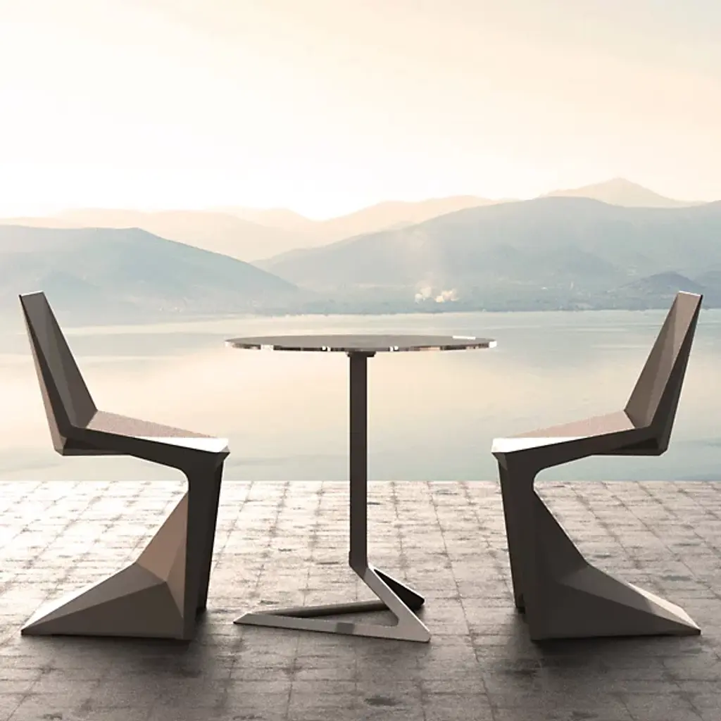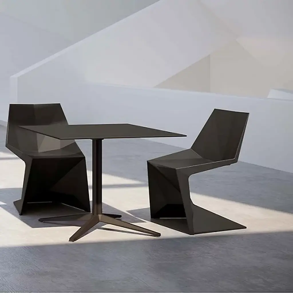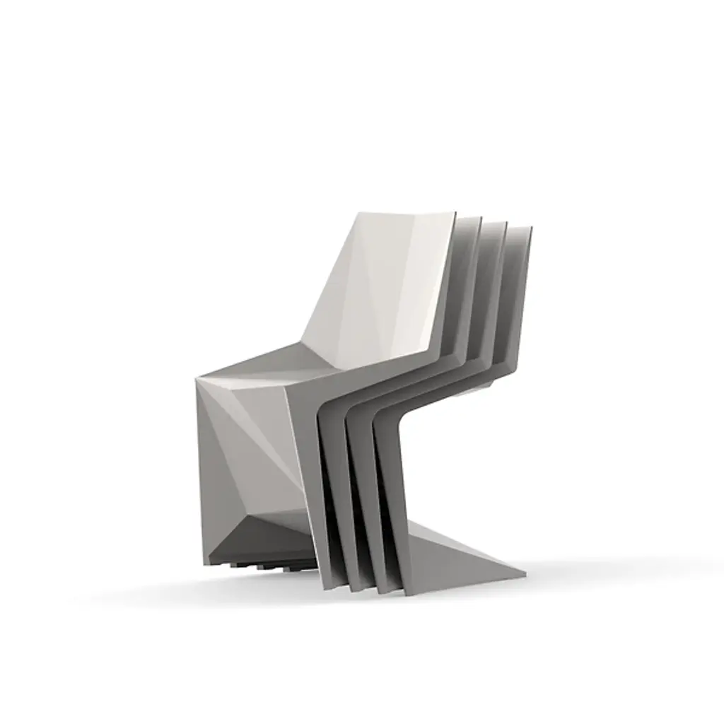Minimal and angular, the Voxel Side Chair Set of 4 by Vondom is a set that delivers full aesthetic appeal while remaining a staple in contemporary home environments. The piece’s focal point rests on its legs, which is angled in such a way that weight distribution is evenly spread, allowing the elimination of back legs and changing the iconic silhouette of the standard chair. The chair itself is made from injected polypropylene with fiber glass, allowing consumers extreme ease with arranging. Chairs are stackable.