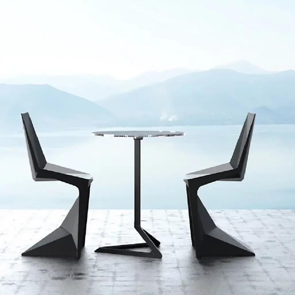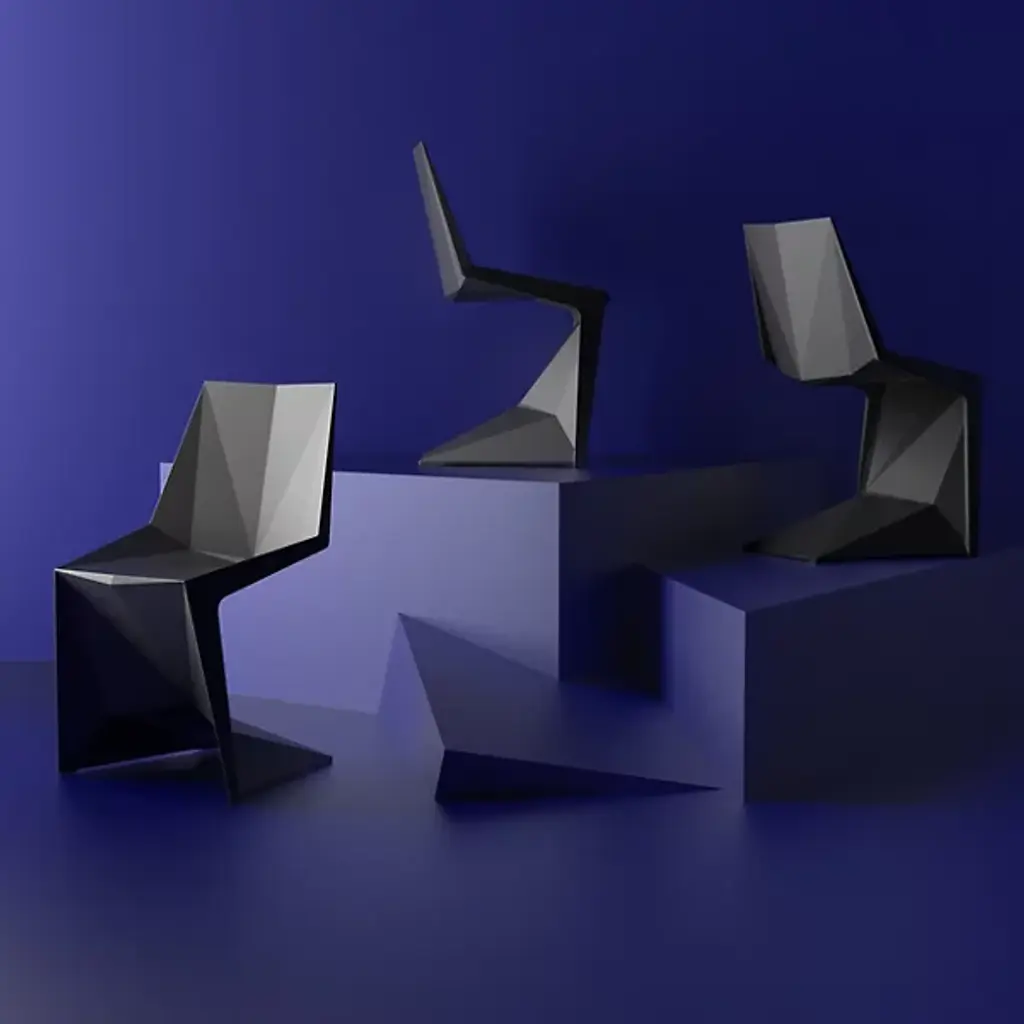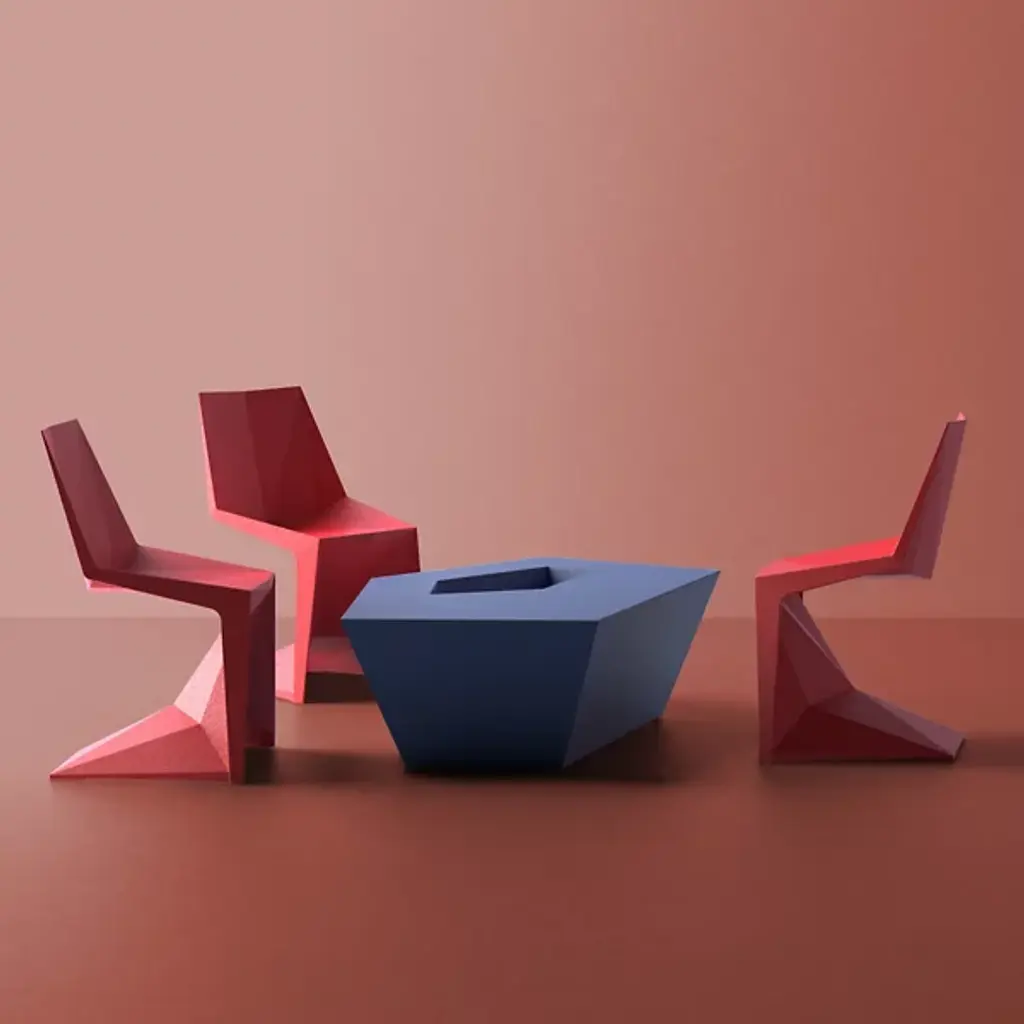 Minimal and angular, the Voxel Side Chair Set of 4 by Vondom is a set that delivers full aesthetic appeal while remaining a staple in contemporary home environments. The piece’s focal point rests on its legs, which is angled in such a way that weight distribution is evenly spread, allowing the elimination of back legs and changing the iconic silhouette of the standard chair. The chair itself is made from injected polypropylene with fiber glass, allowing consumers extreme ease with arranging. Chairs are stackable.