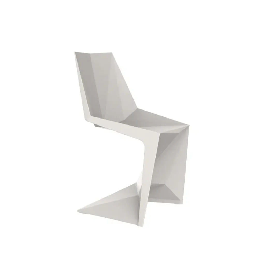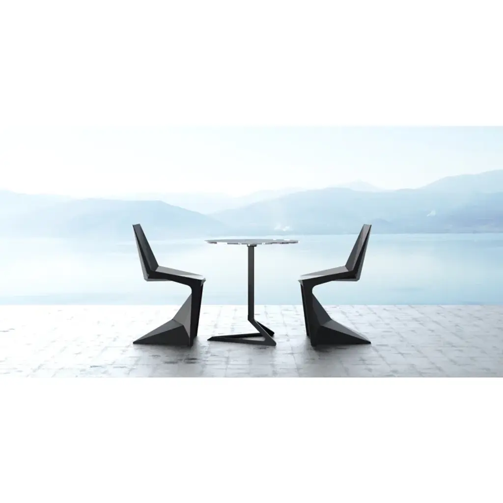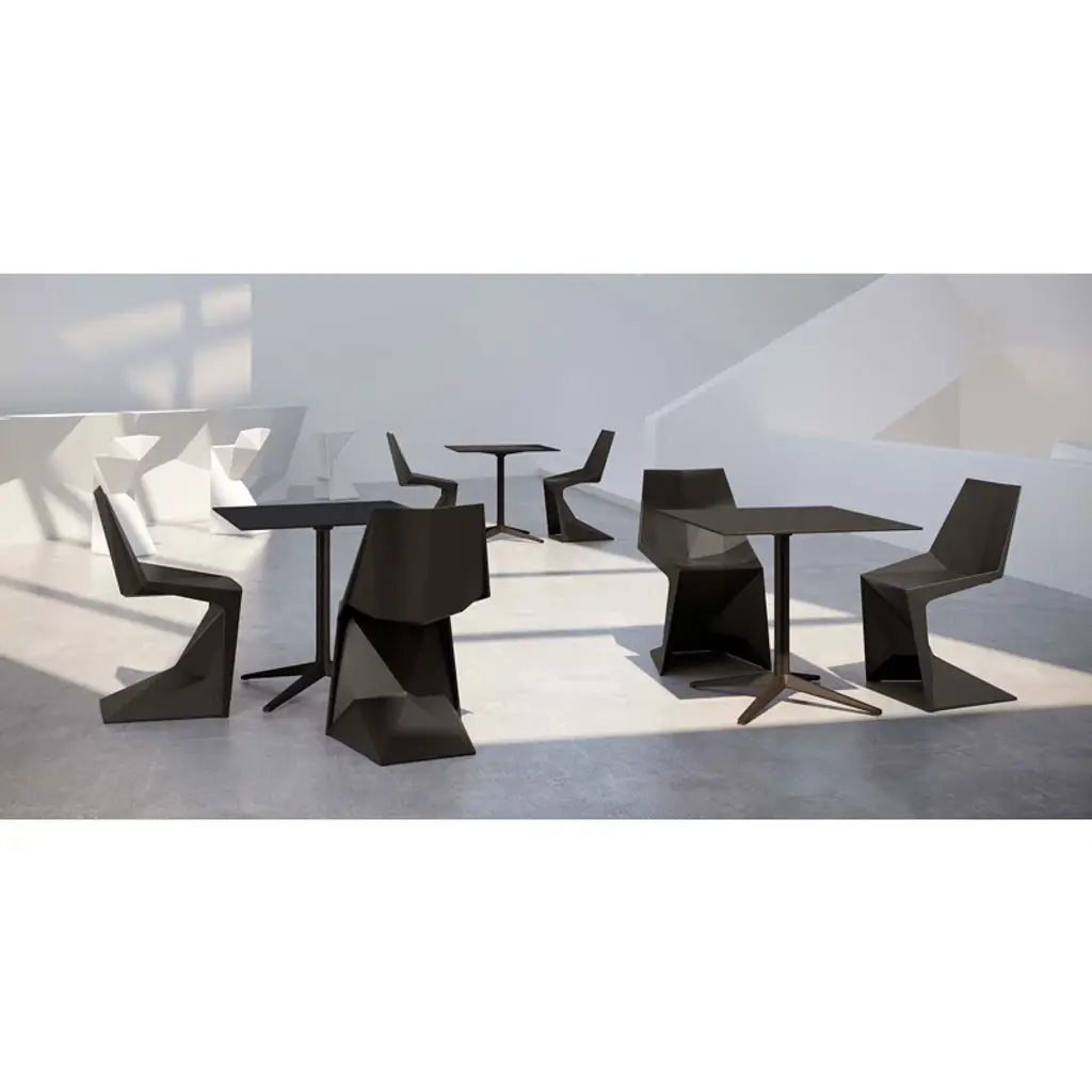 Vertex, a former piece by Vondom is a set of tables and chairs with triangular planes which join dynamically together to create comfortable forms suitable for dining or meeting rooms, banquet or lecture halls, and other casual needs. Vertex looks as if it was chiseled from a single block of material, what remains is structural yet, beautiful. The product was created to integrate a more conceptual architectural piece into our space, to give it a more sophisticated touch.