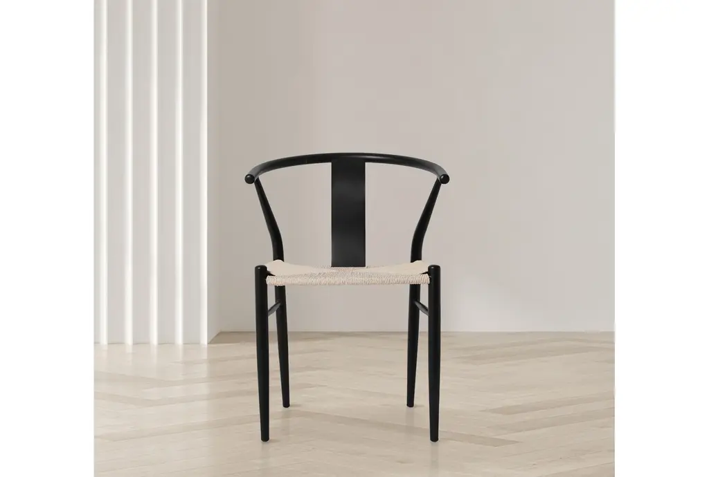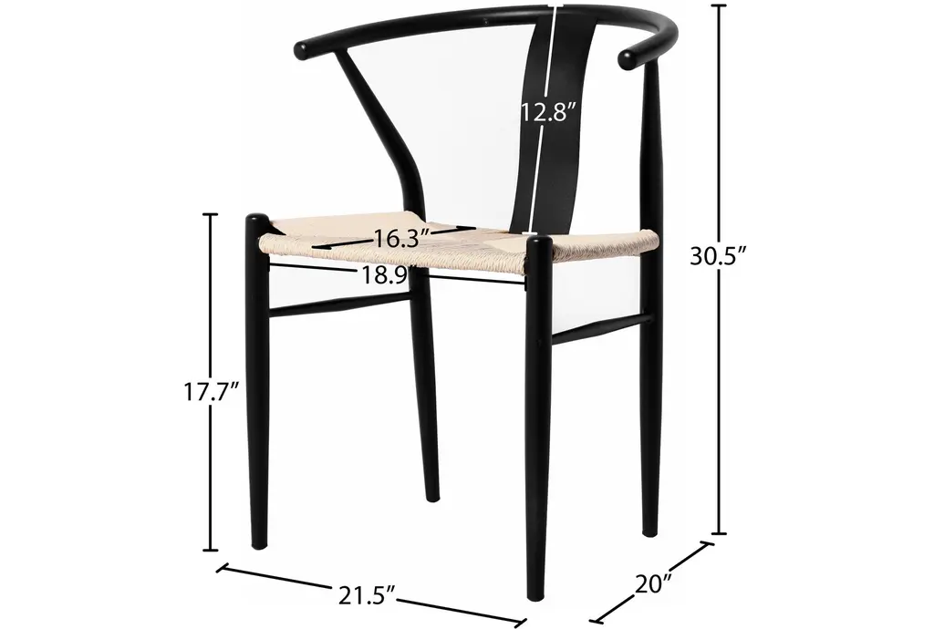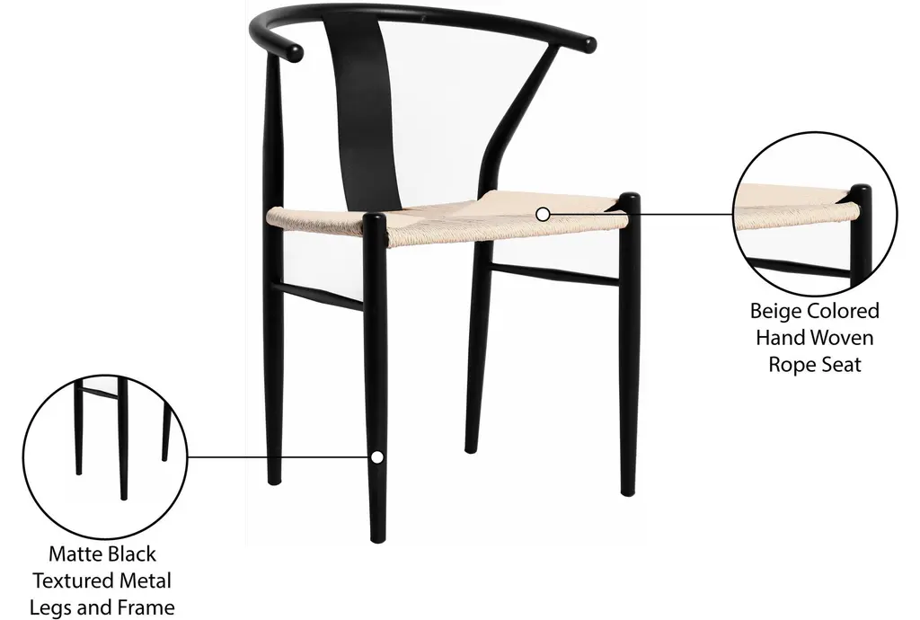 The Vrenn Black Hand Woven Rope Dining Chair Set of 2 offers a stylish and modern addition to any dining space. These chairs feature a unique blend of mid-century modern design and contemporary aesthetics, making them a versatile choice for various interior styles. The beige colored hand woven rope seat provides a comfortable and chic seating experience.