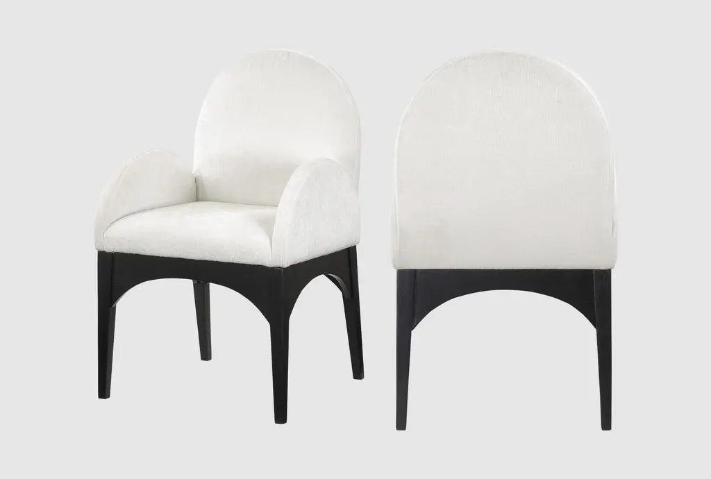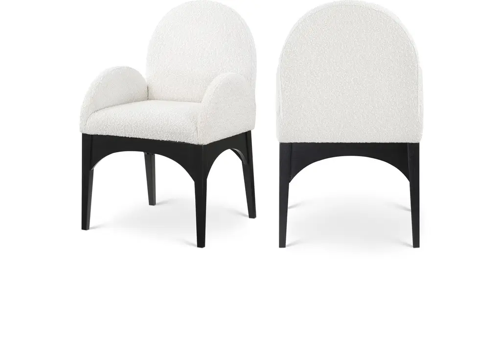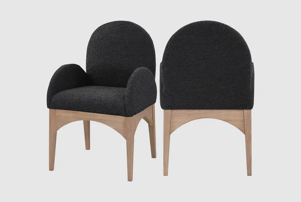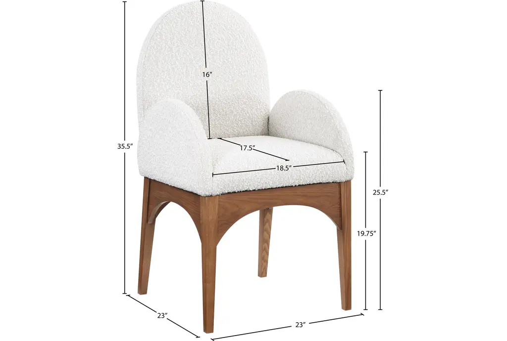 The Waldorf Cream Boucle Fabric Dining Chair with Walnut Finish is the perfect addition to your dining room. This modern chair combines comfort and style, featuring soft boucle fabric and a sturdy walnut finish. Enjoy the plush seating and the supportive armrests as you dine in sophistication.