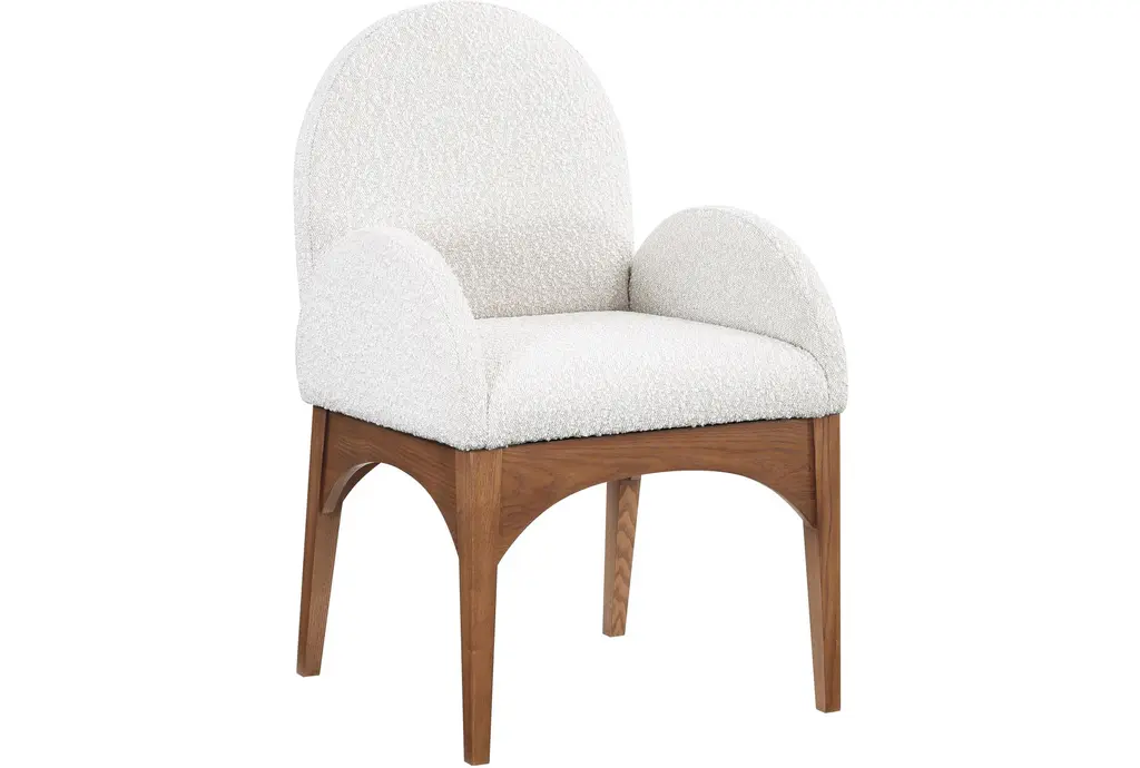 Waldorf Cream Boucle Fabric Dining Chair With Walnut Finish