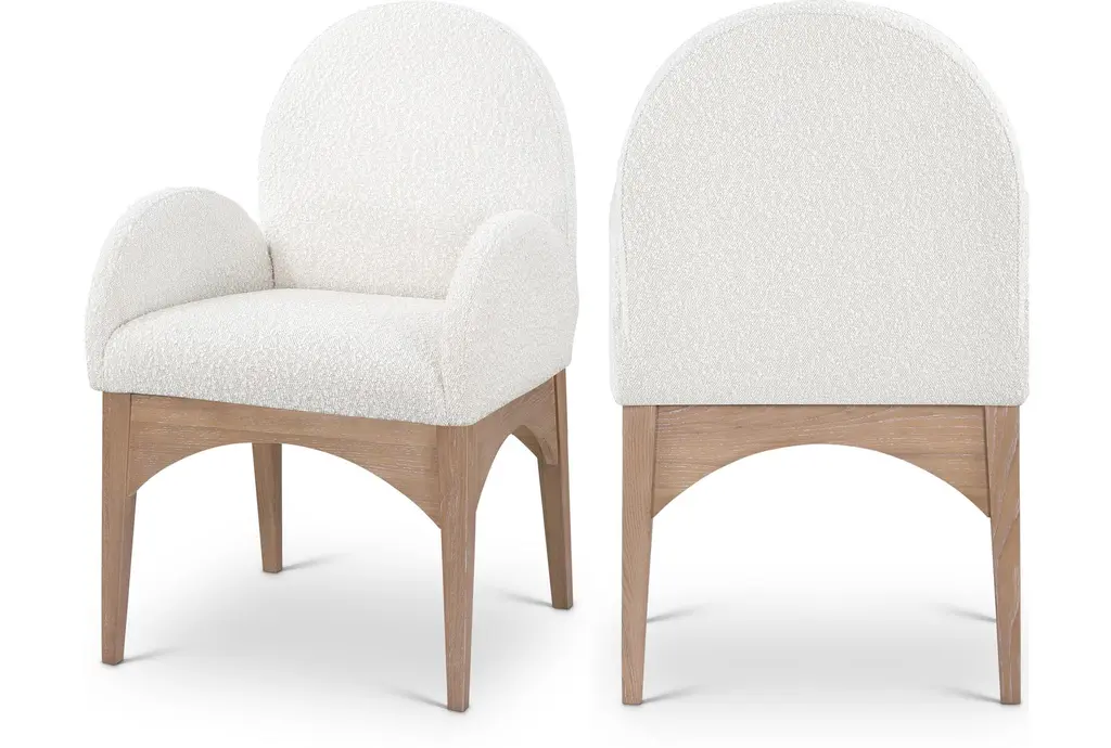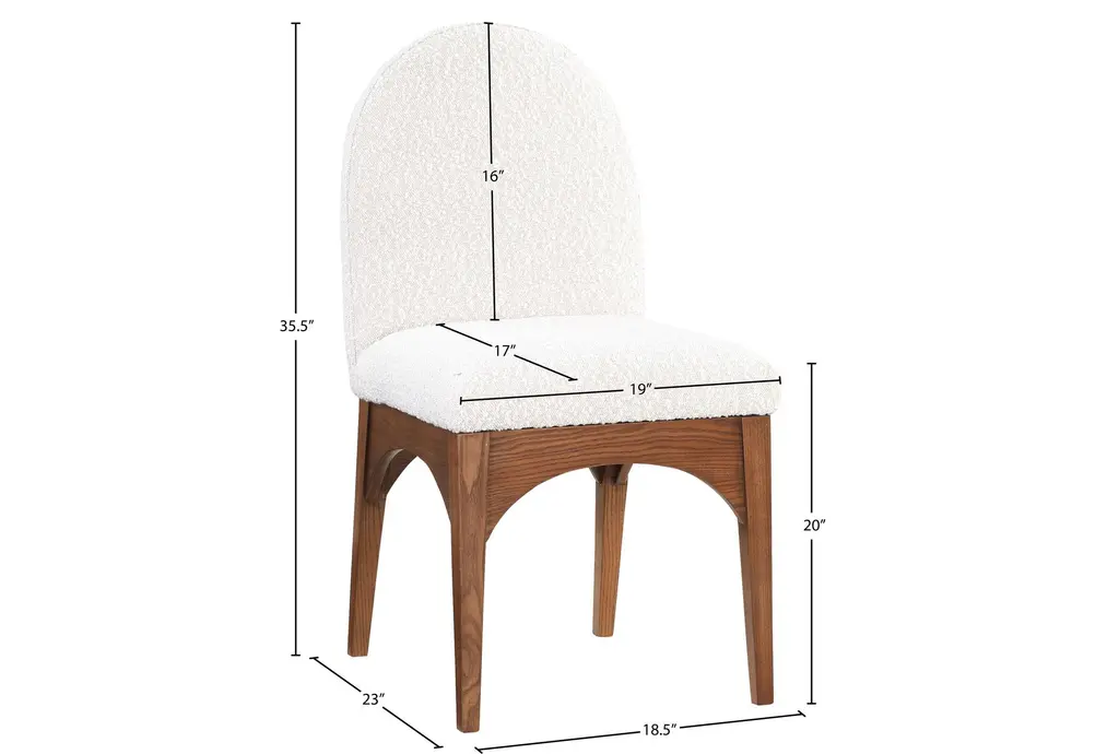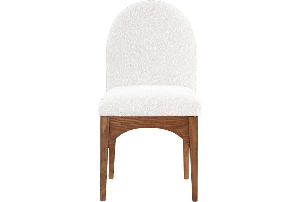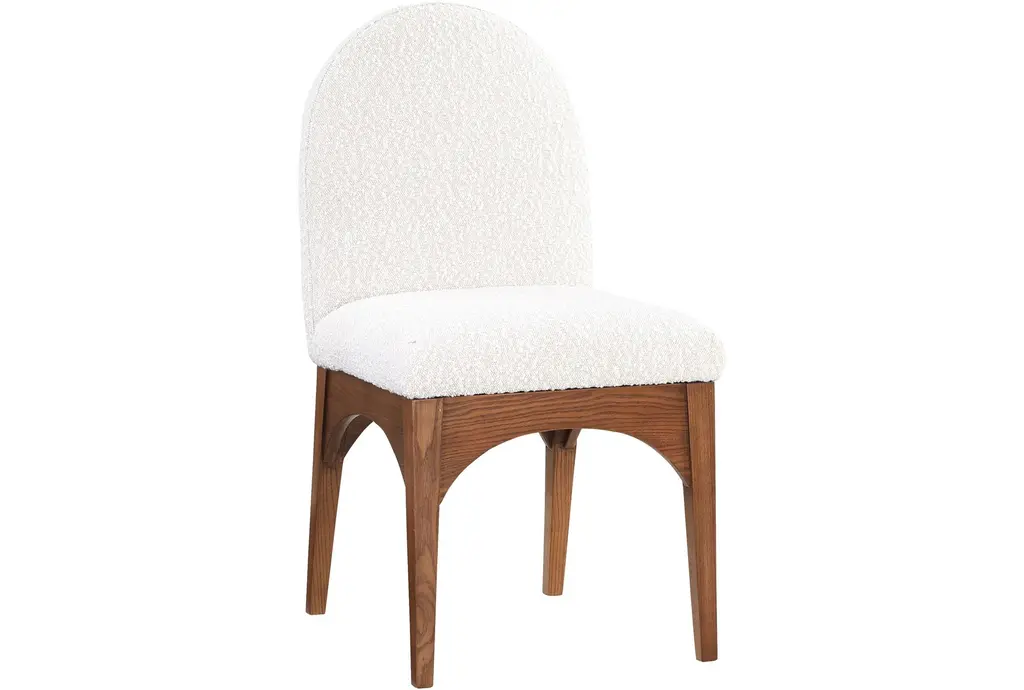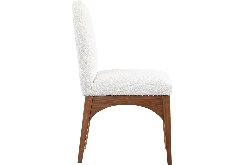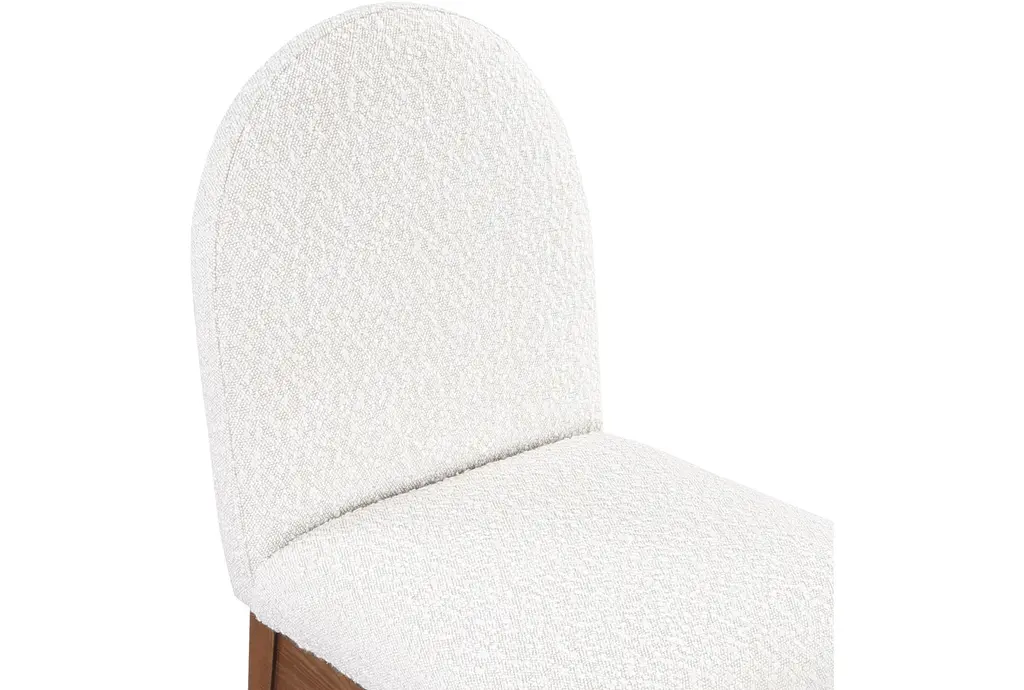 Waldorf Cream Boucle Fabric Dining Vanity Chair With Walnut Finish