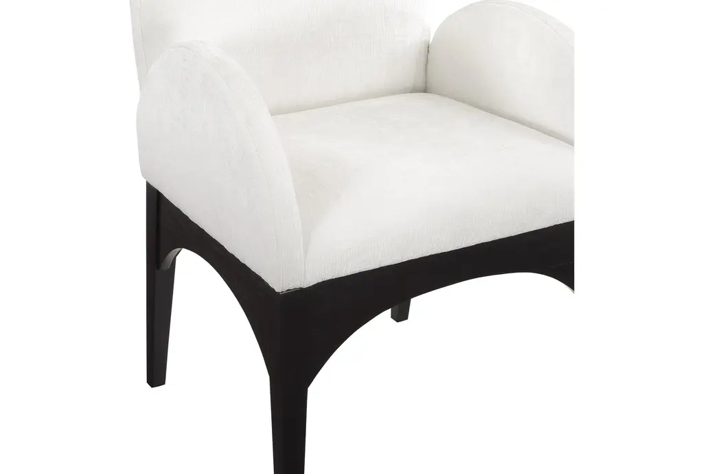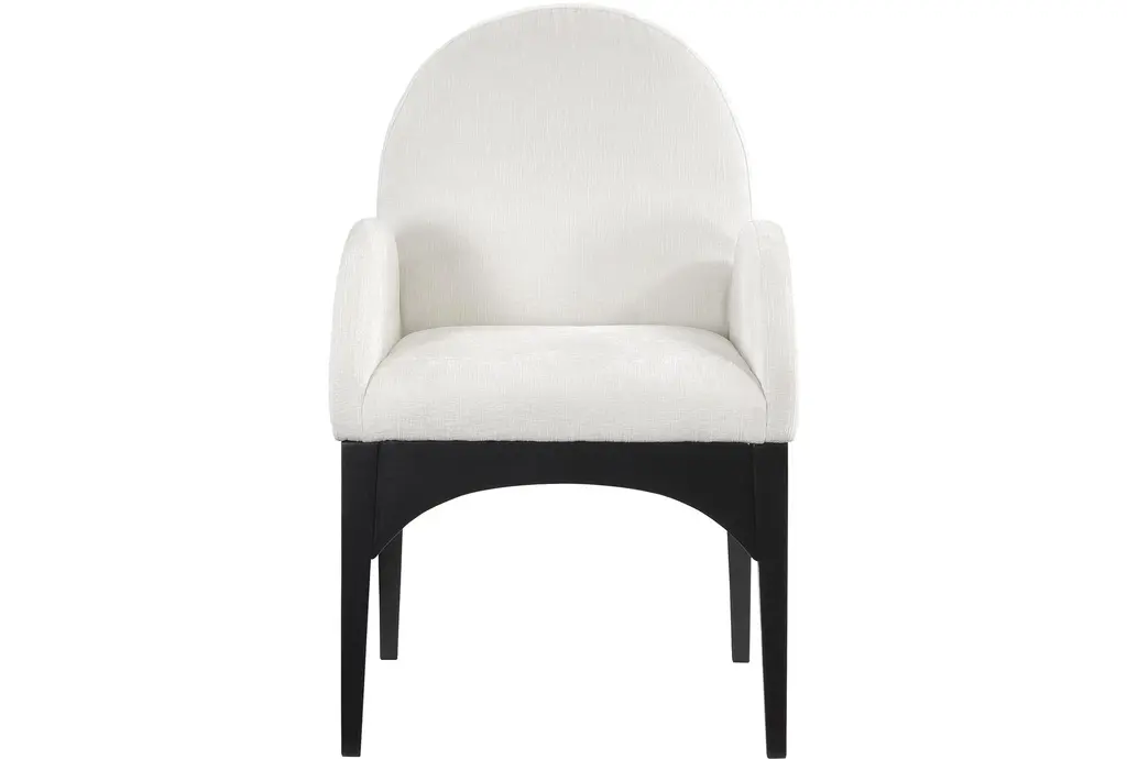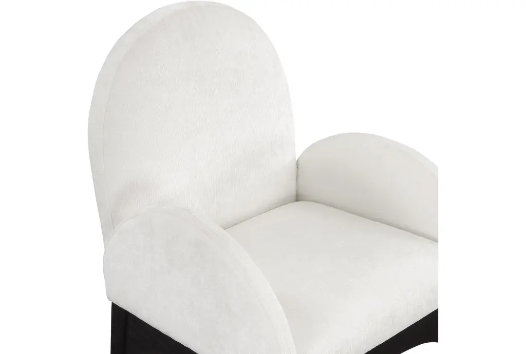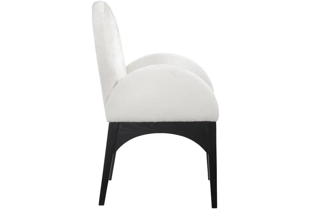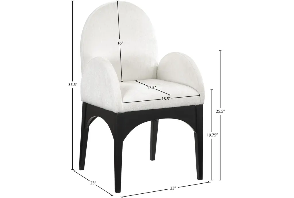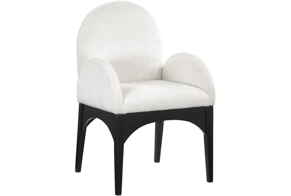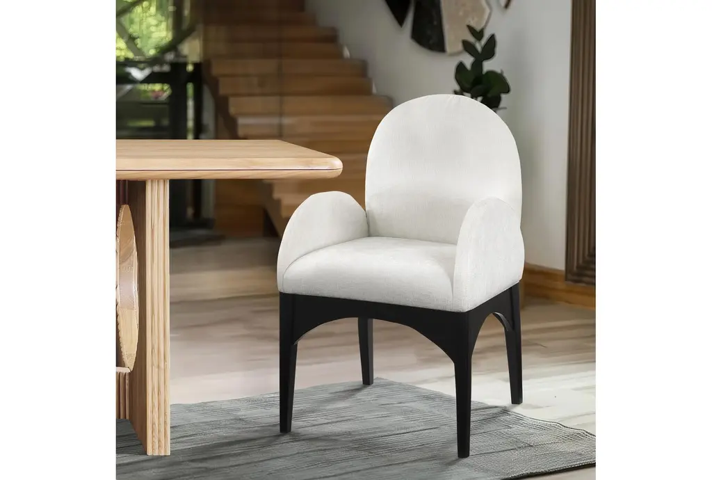 The Waldorf Cream Chenille Fabric Dining Chair with Black Finish is a modern addition to any dining room. Its soft chenille fabric and plush cushioning provide exceptional comfort, while the solid ash wood frame ensures durability. The matte black finish on the wooden legs adds a sophisticated touch.