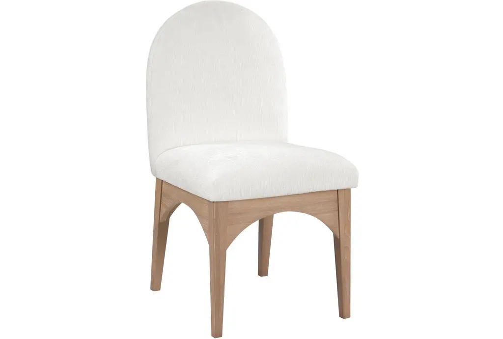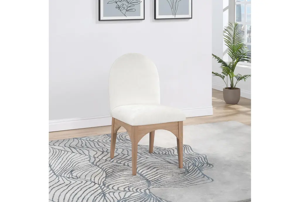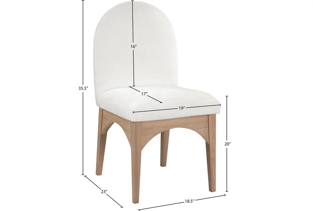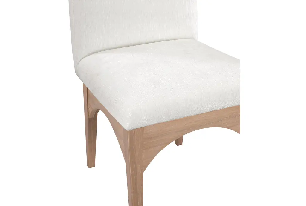 The Waldorf Cream Chenille Fabric Dining Vanity Chair with Natural Finish is a perfect addition to your dining room. Combining comfort and style, this armless chair features a soft chenille fabric and sturdy ash wood legs. Its simple yet modern design makes it suitable for various interior styles.