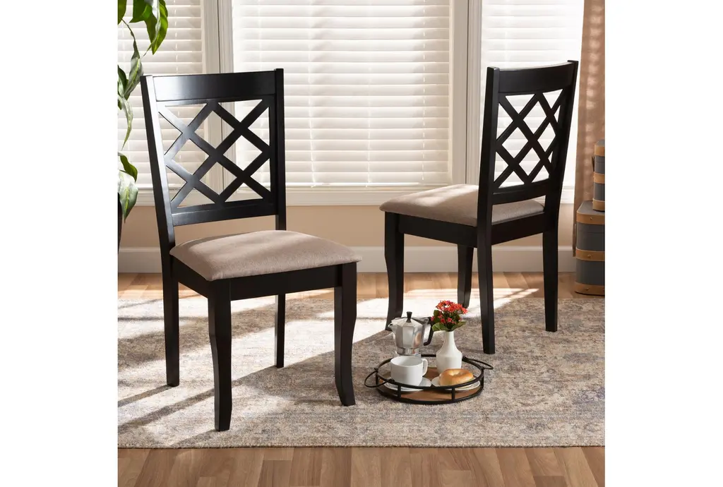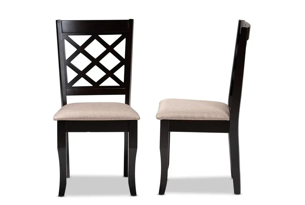 Warner Sand Fabric Upholstered Dark Brown Finished 2-Piece Wood Dining Chair Set Of 2 | Oak