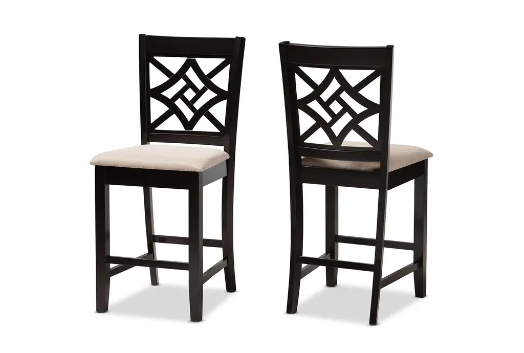 The Warner Sand Fabric Upholstered Dark Brown Finished 2-Piece Wood Dining Chair Set brings a touch of modern elegance to your dining space. These chairs are designed with a sophisticated dark brown finish and upholstered in a soft sand-colored polyester fabric, providing both comfort and style. Constructed from durable oak and rubberwood, this set is built to last.