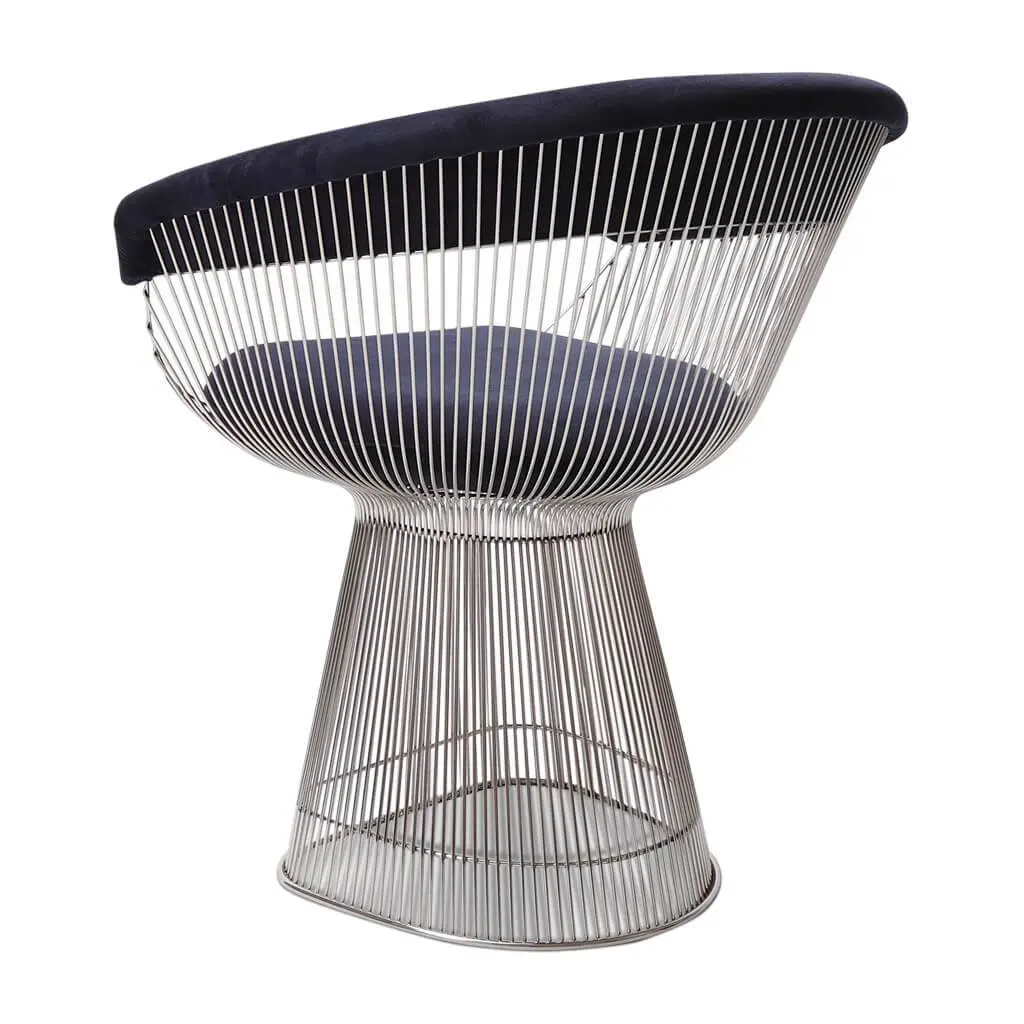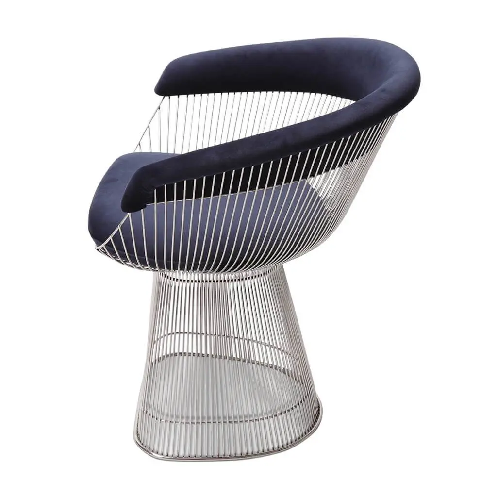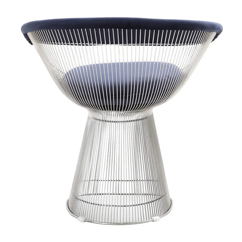 Designed in the 1960s, distinguished by its iconic wire base, the soft curvatures of this classic series are finely constructed with detail from reinforced stainless steel rods and welded to horizontal and edge framing wire for a uniquely stable foundation. A stand-alone statement piece or the perfect addition to the Warren Dining Table, the Warren Platner chair is evenly upholstered across the alluring and wide back frame and firmly cushioned for endless hours of enjoyment.