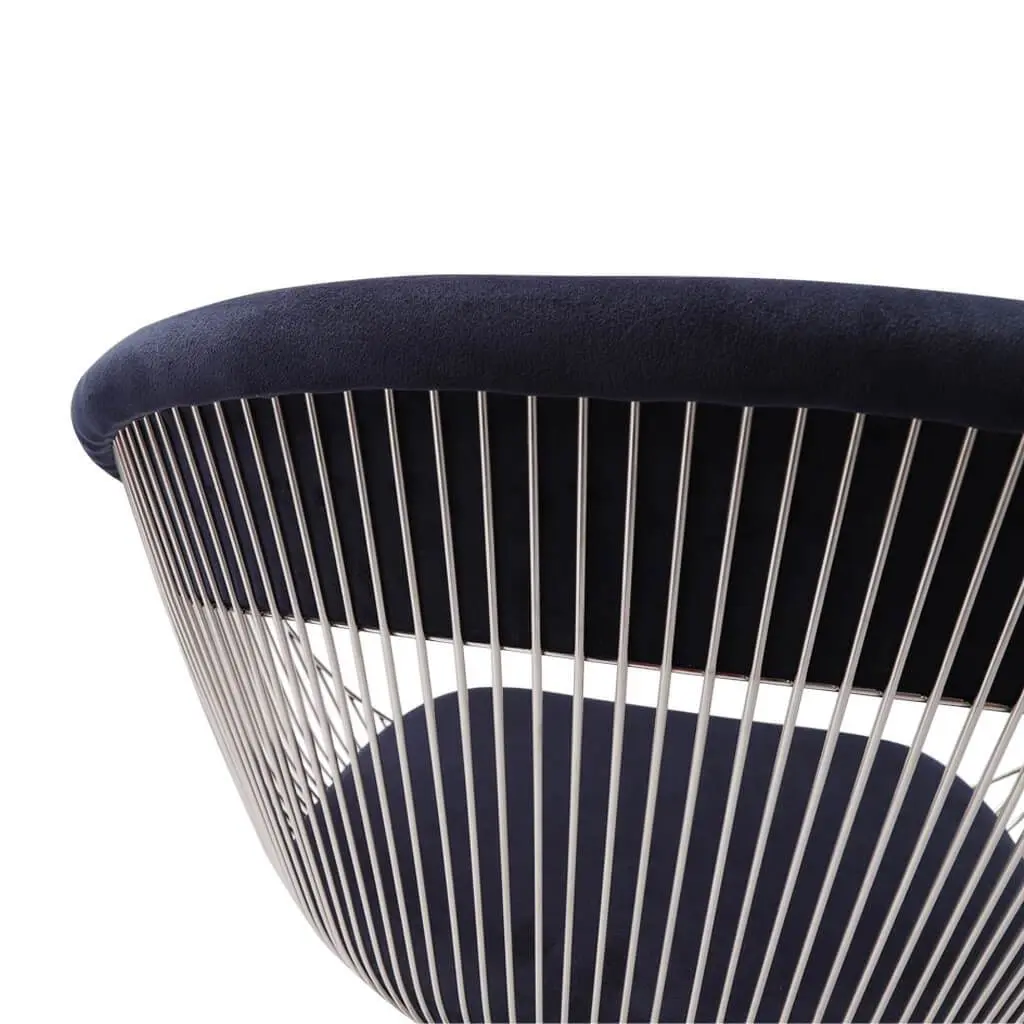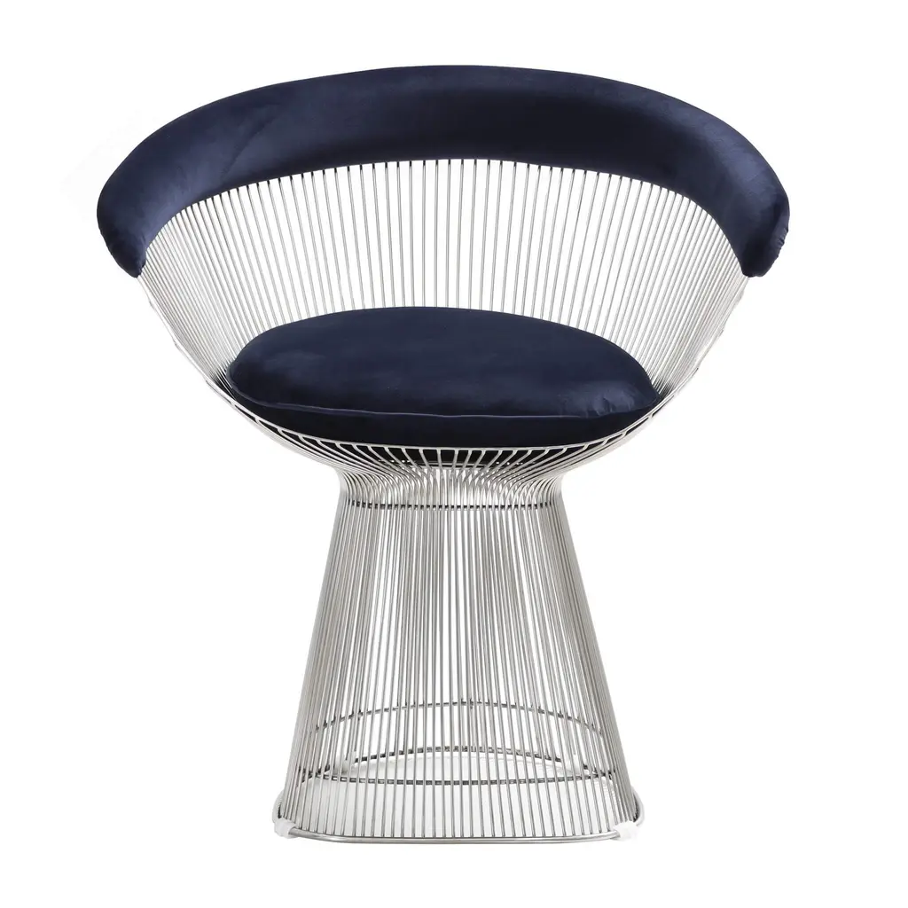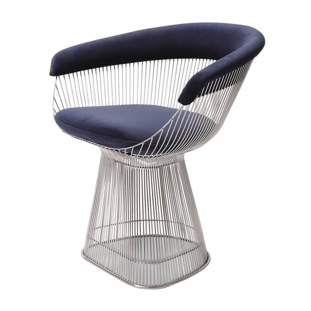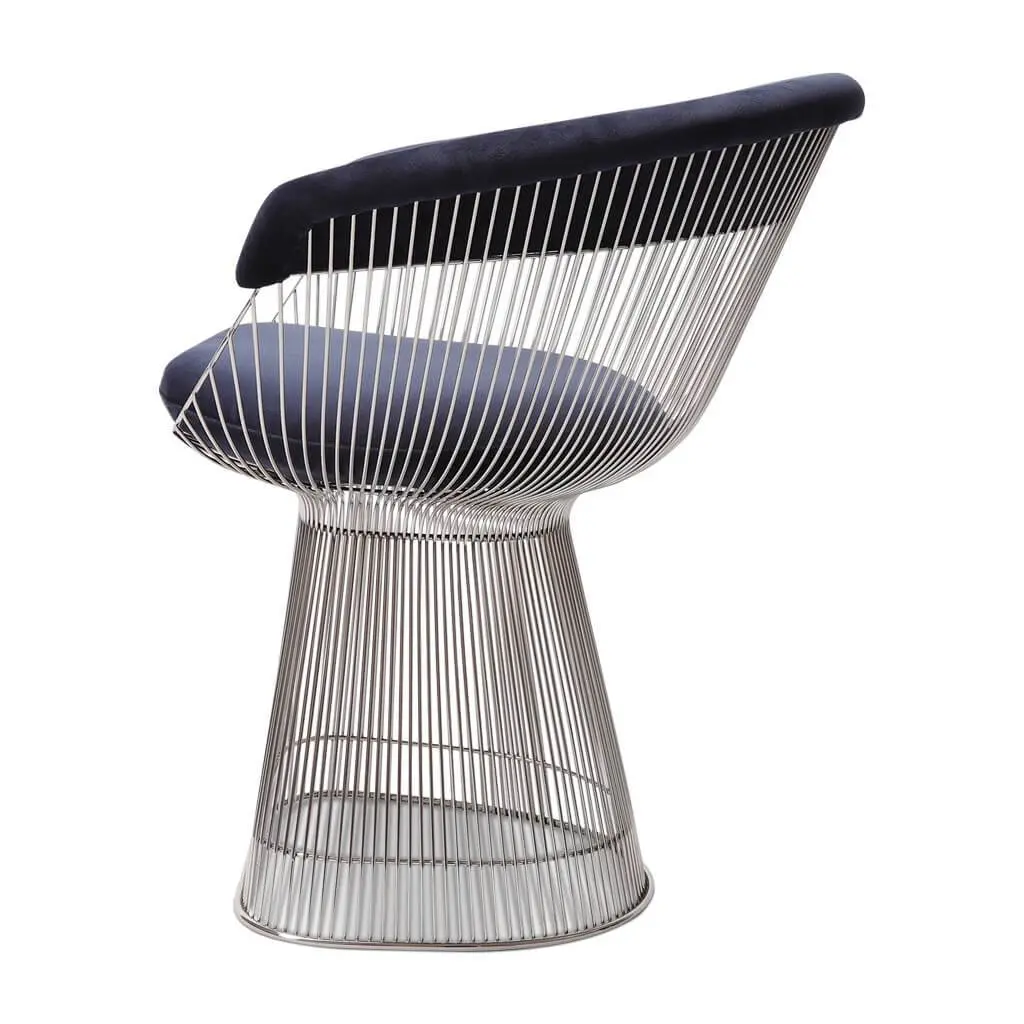 Designed in the 1960s, distinguished by its iconic wire base, the soft curvatures of this classic series are finely constructed with detail from reinforced stainless steel rods and welded to horizontal and edge framing wire for a uniquely stable foundation. A stand-alone statement piece or the perfect addition to the Warren Dining Table, the Warren Platner chair is evenly upholstered across the alluring and wide back frame and firmly cushioned for endless hours of enjoyment.