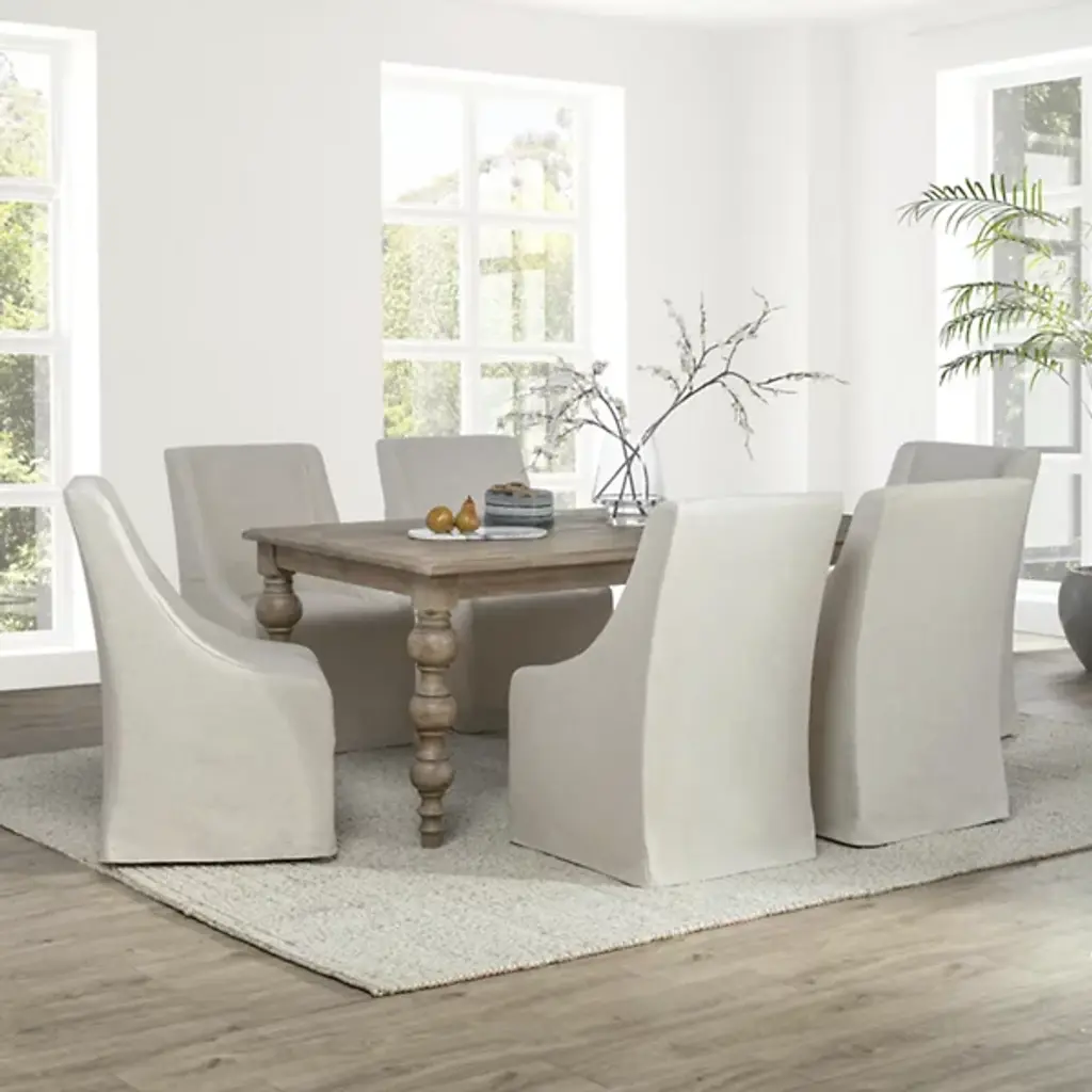 The Warwick Dining Chair from Classic Home combines casual comfort with thoughtful design details. Upholstered in soft, durable fabric, this chair features sloped arms, a slipcover, and discreet casters for easy movement around the table. The fabric offers cozy comfort, bringing a relaxed yet refined feel to your dining area. With its mix of modern convenience and classic style, it’s the kind of seat you’ll want to linger in long after the meal is done.
