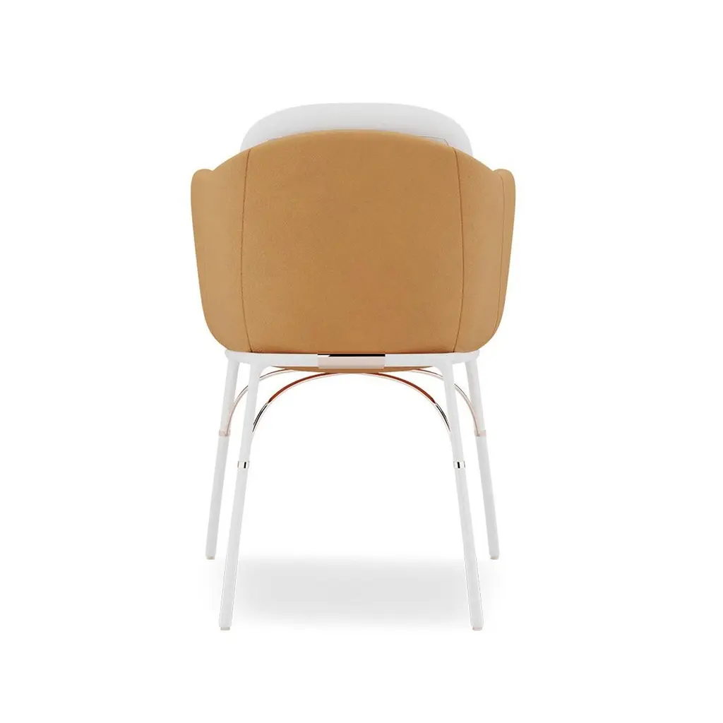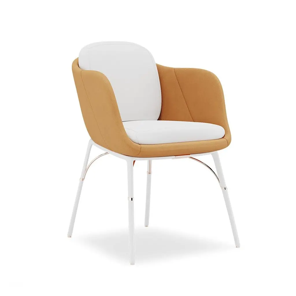 Waterproof Dining Chair With White And Camel Upholstery And White Legs