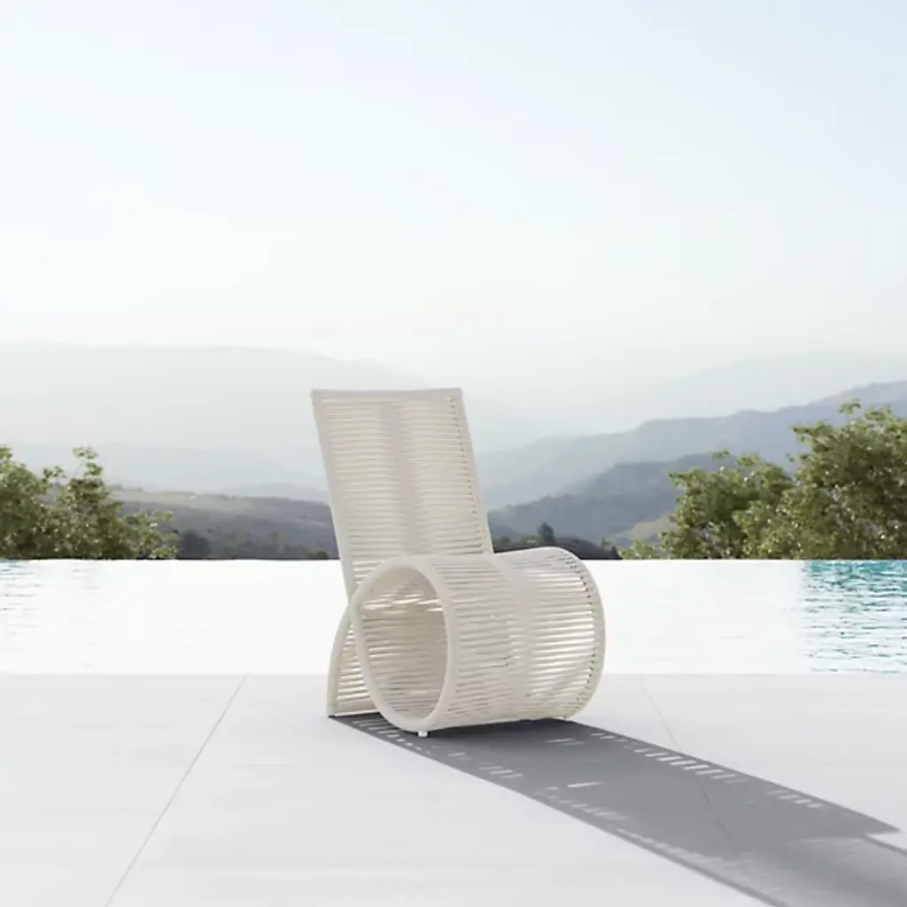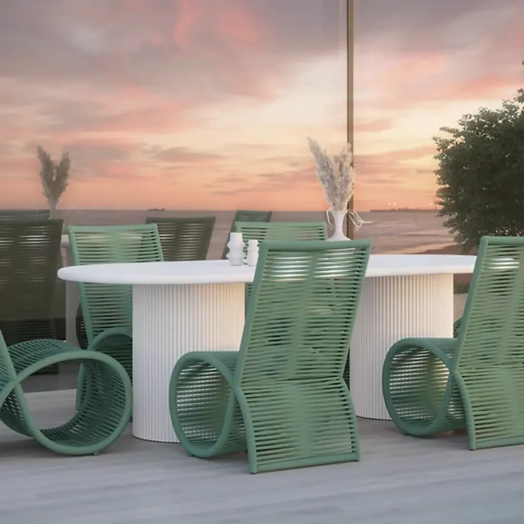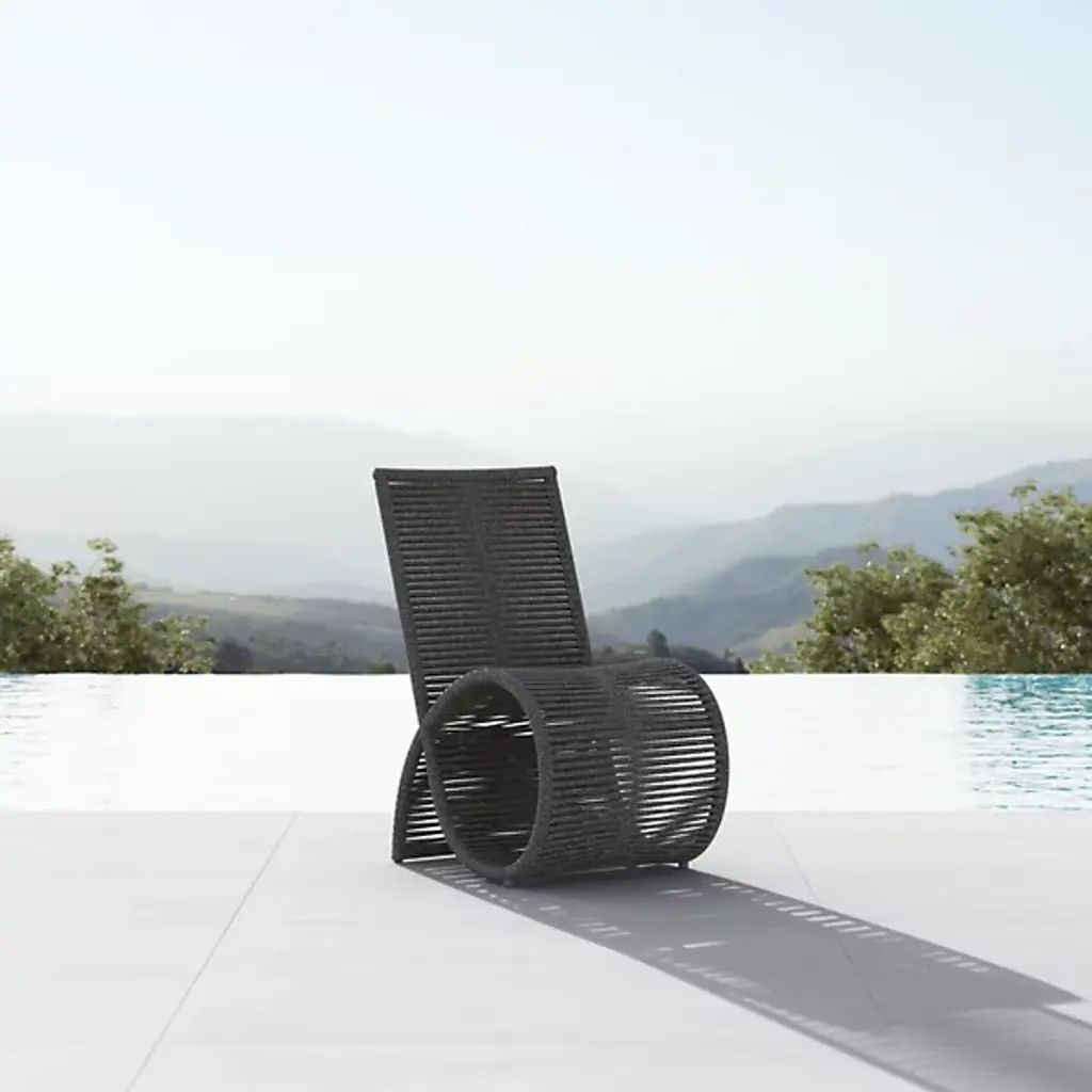 The Wave Outdoor Dining Chair, Set of 2 from Azzurro Living elevates the act of dining into an encounter with sculptural artistry. Its body-conscious curves flow in one unbroken gesture, where tightly woven textelene rope creates a linear texture against the chair's undulating aluminum frame. The design captures the essence of natural wave motion through calculated proportions and rhythmic material application, creating fluid geometry that adds kinetic energy to outdoor dining arrangements.